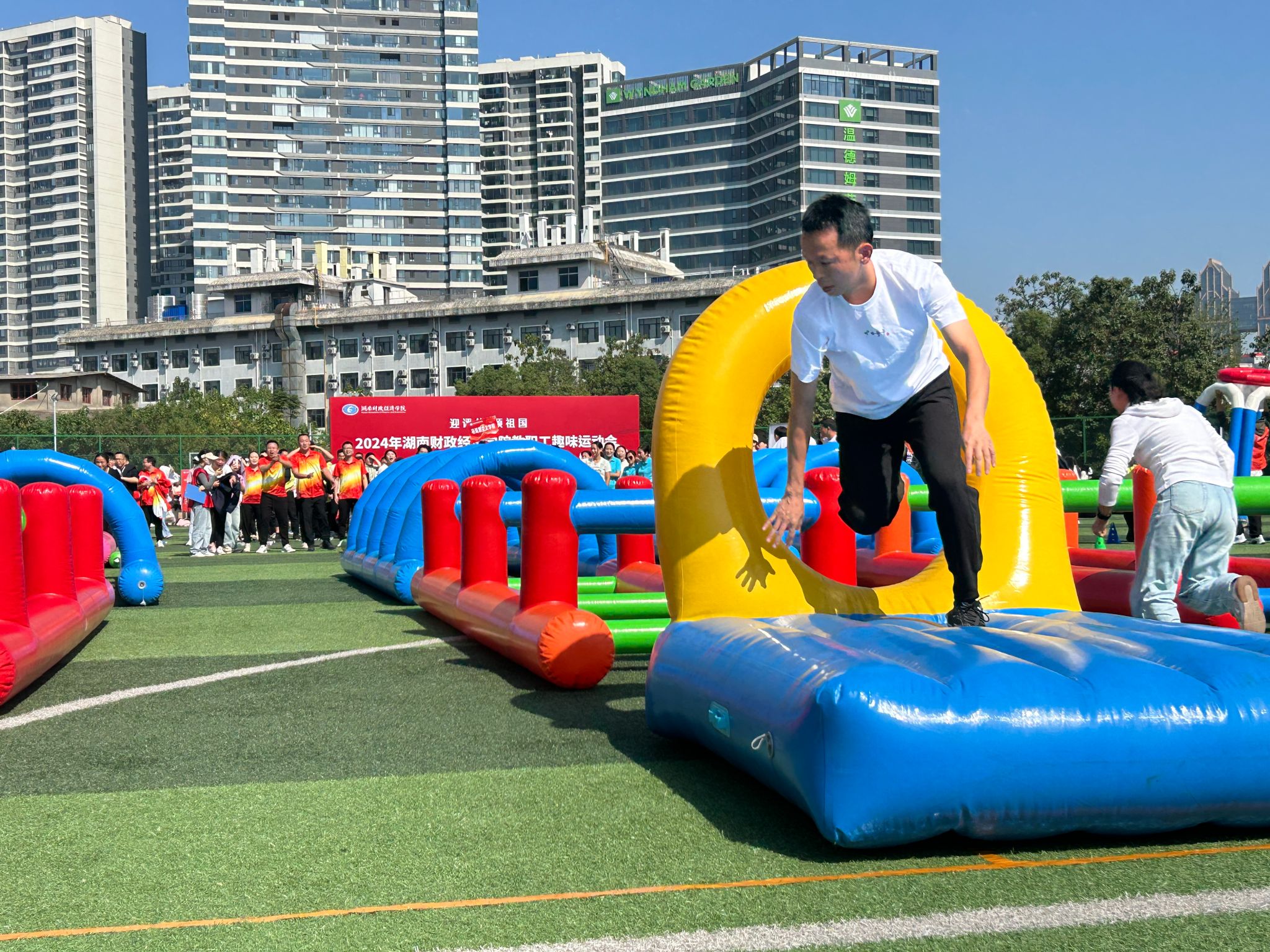 本次趣味运动会以团体项目为主,公司常务副总经理雷绪斌率全体职工参赛,与全校17支队伍同台竞技。本着“友谊第一,比赛第二”的精神,公司职工踊跃参加“龙行天下”“凝心聚力”“砥砺前行”和“灌篮高手”四项趣味竞技项目,每个项目都趣味十足,充满智慧的较量和飞扬的激情。