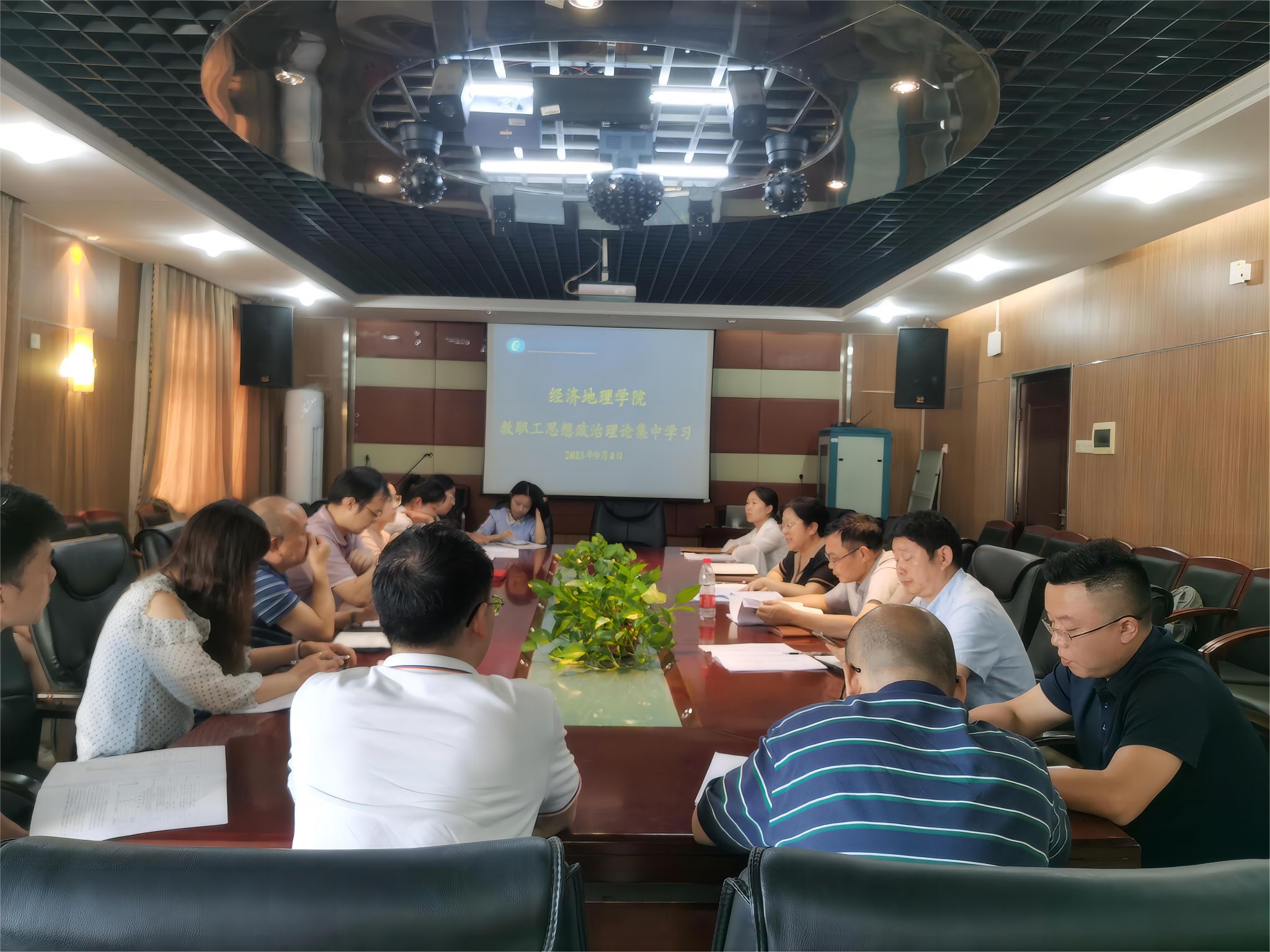(本网讯)近日,经济地理学院在主校区办公楼1014会议室开展教职工思想政治理论集中学习活动。活动由院直属党支部书记姚旭辉主持,学院全体教职工参加。