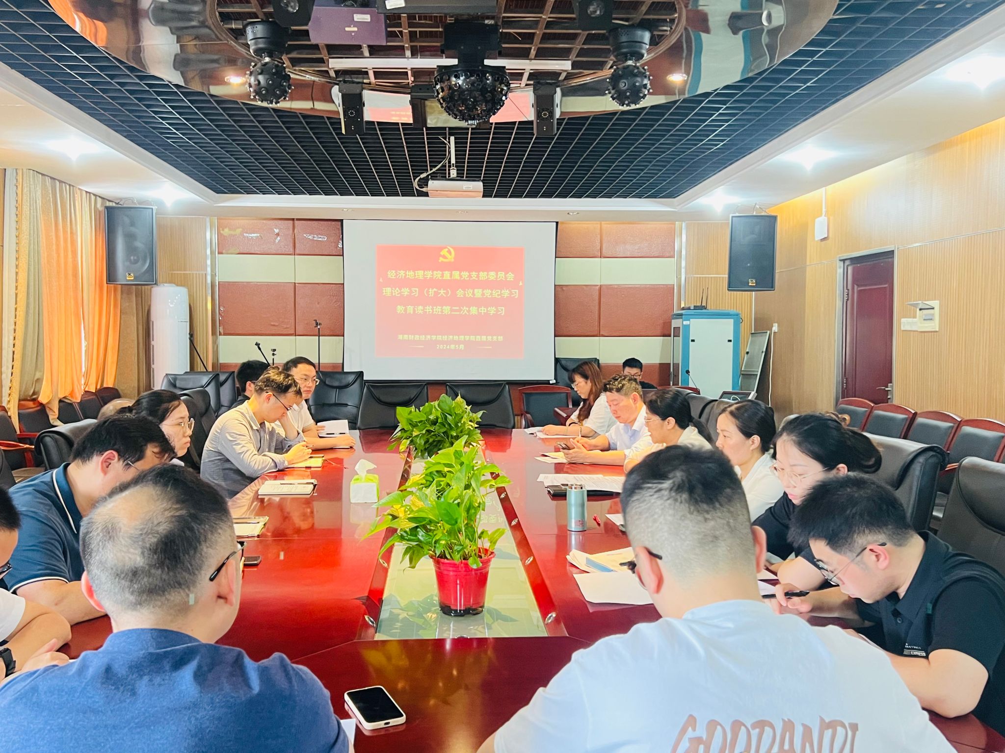 (本网讯)5月22日下午,经济地理学院在行政楼1014会议室以“深入学习《中国共产党纪律处分条例》,锤炼党性修养,全面从严治党”为主题进行党纪学习教育读书班第二次集中学习研讨。院直属党支部书记姚旭辉主持学习研讨,全体党员参加。