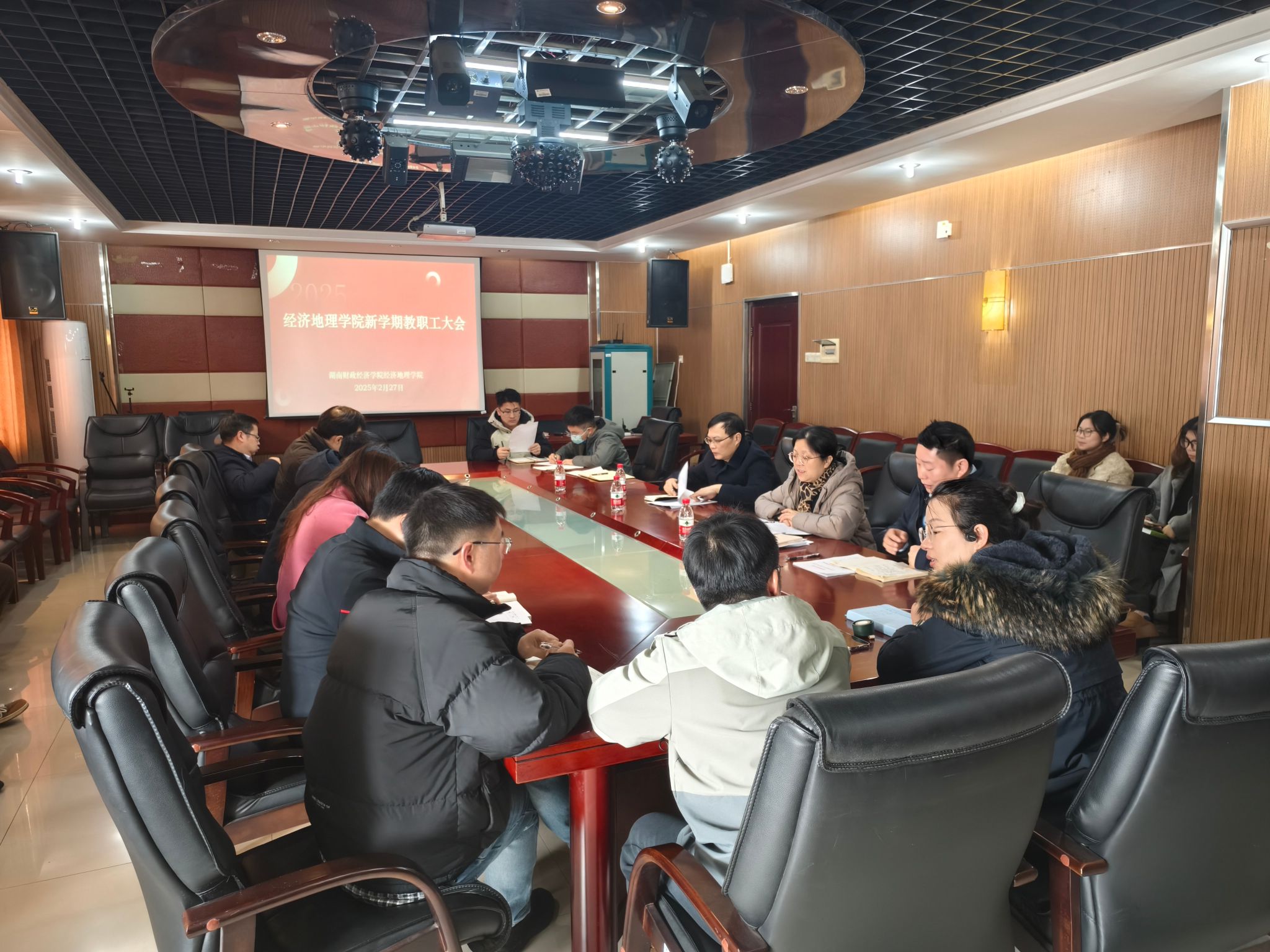 (本网讯)为贯彻校教职工大会和校党委对我院重要指示精神,进一步统一思想,压实责任,确保新学期各项工作有序进行,2月27日上午,经济地理学院在行政楼1014会议室召开了2025年新学期经济地理学院教职工大会,会议由副院长苏昌贵主持,院长彭文斌、院直属党支部书记姚旭辉出席会议,全体教职工参加会议。