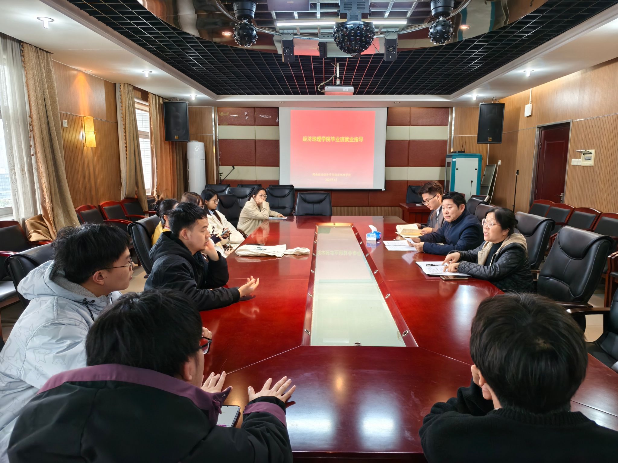 (本网讯)为进一步推动毕业生更快更好就业,深入了解毕业生实习、就业等方面存在的难点、堵点问题,3月31日下午,经济地理学院在主校区行政楼1014会议室召开了毕业班就业调研指导会。会议由院直属党支部书记姚旭辉主持,副院长苏昌贵、综合办主任章艳宇、教务办尹勇老师和毕业班学生代表参加会议。