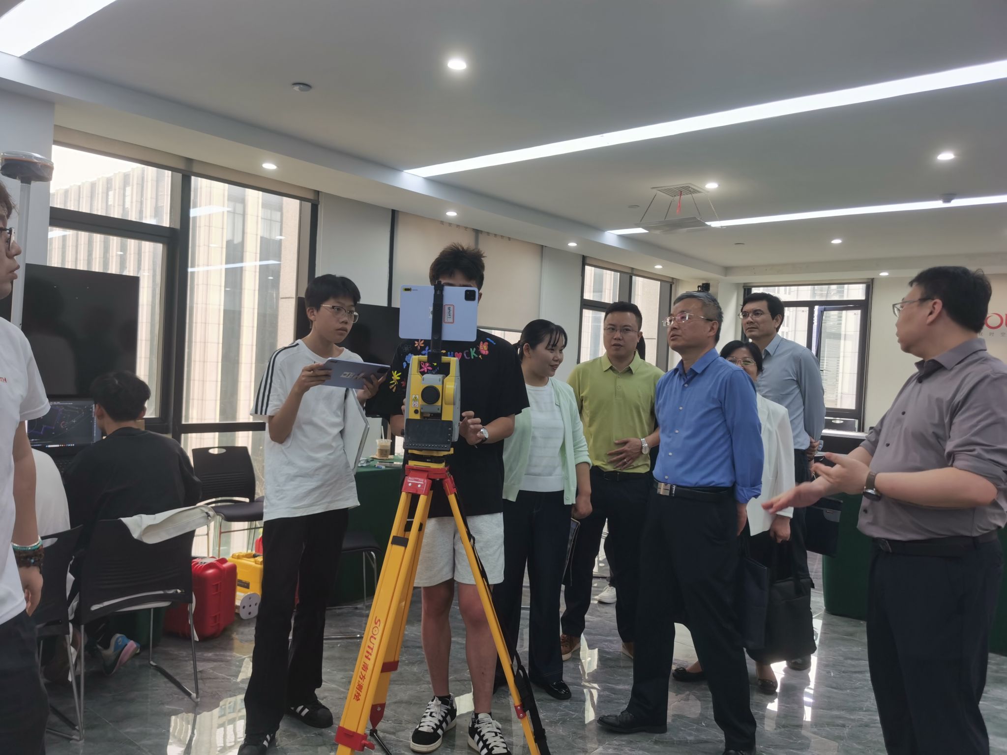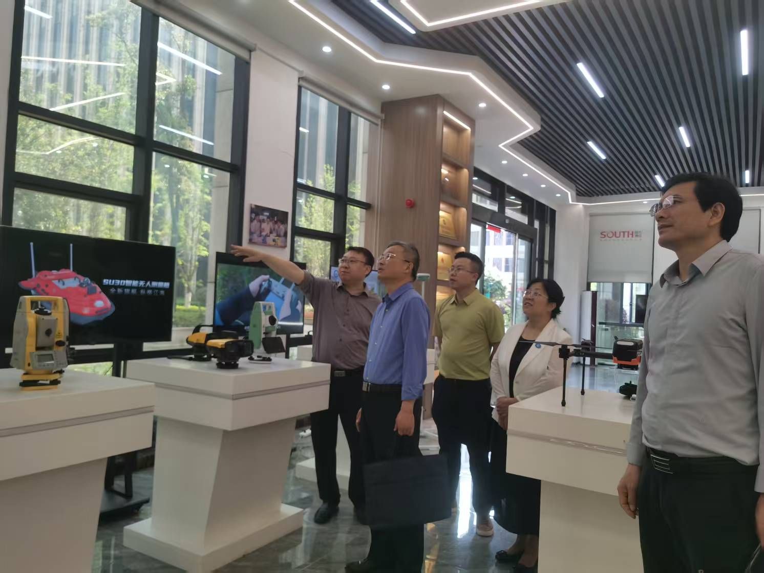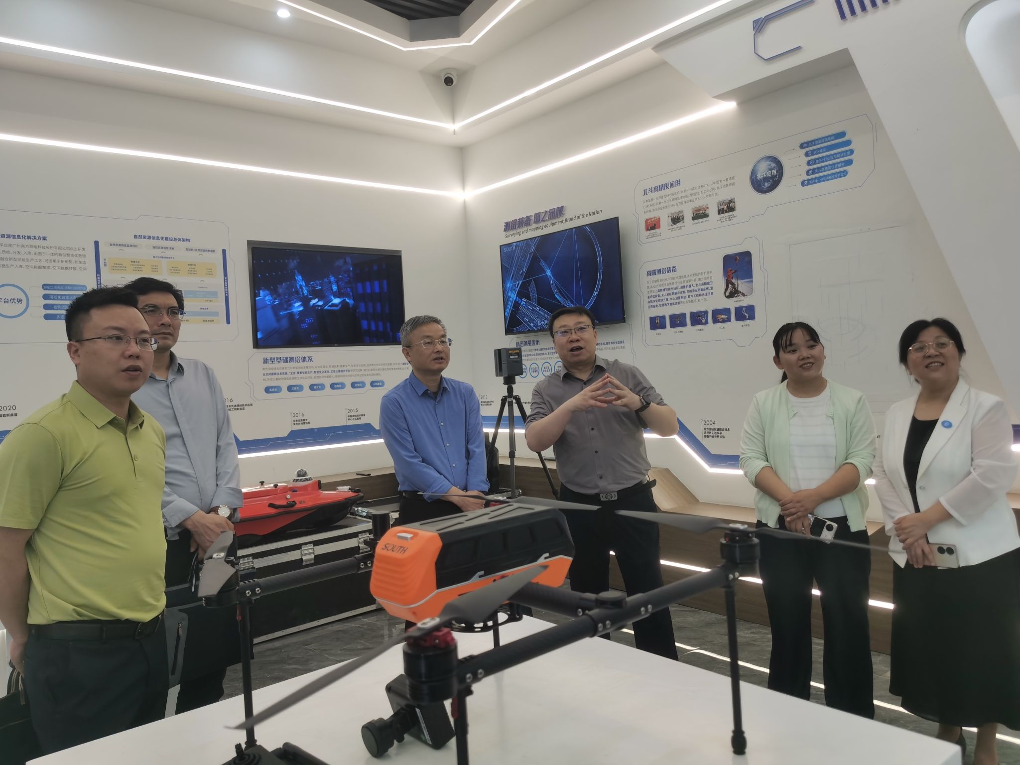 南方测绘湖南分公司总经理张勇政热情接待了刘钟理一行。在他的带领下,刘钟理一行实地察看了公司展厅和数据中心,了解了公司在地理信息、测绘工程等领域的最新技术成果及应用案例,通过智测元穹智能测绘展演,展现了公司对智能测绘技术的精准掌握与创新应用。
