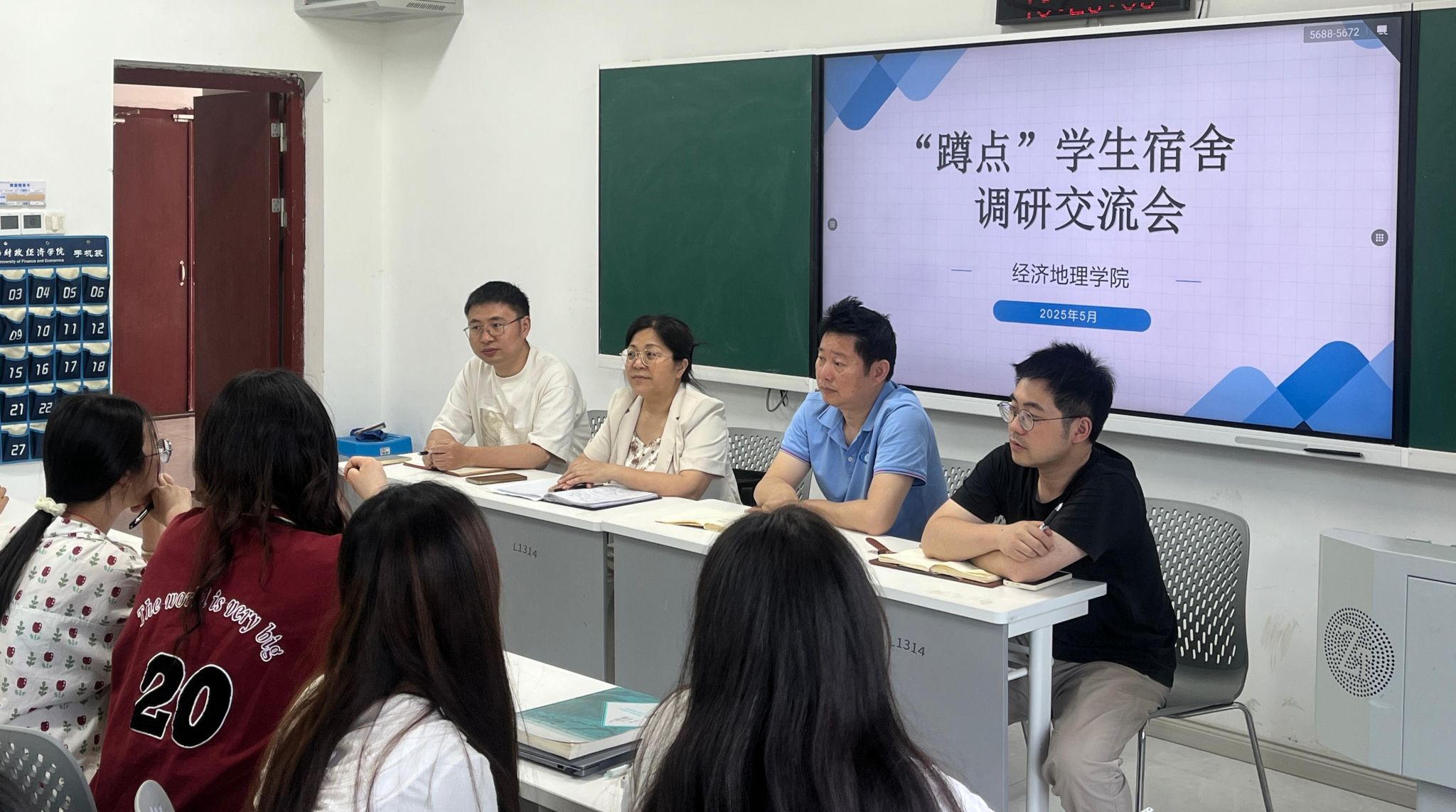 (本网讯)5月13日下午3点,经济地理学院在雷锋校区至诚楼1314教室开展“蹲点”学生宿舍调研交流会。本次会议由副院长苏昌贵主持,院直属党支部书记姚旭辉、系主任、教师代表以及24级全体寝室长参与会议。