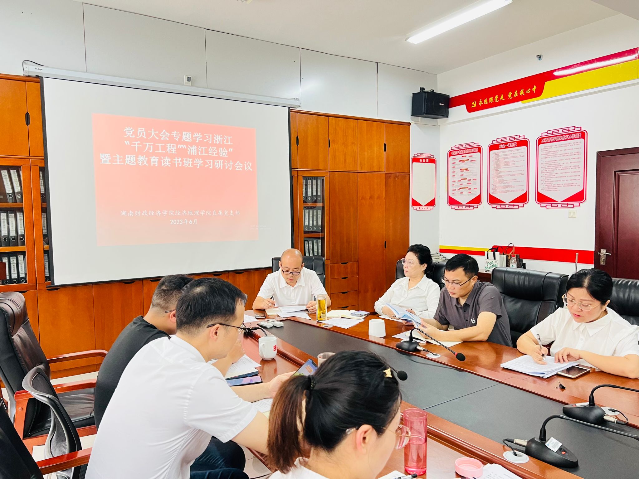 (本网讯)近日,经济地理学院直属党支部在主校区行政楼911会议室召开党员大会,支部全体党员认真学习“千万工程”“浦江经验”。院直属党支部书记姚旭辉主持会议。