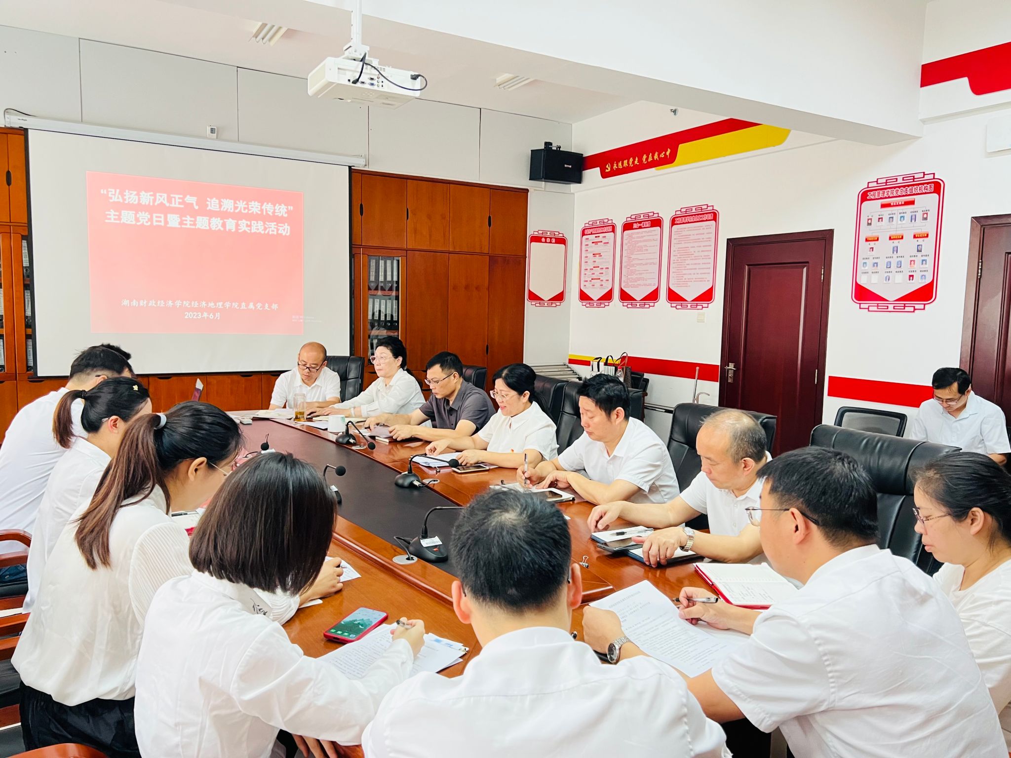 (本网讯)为激励党员干部干事创业热情,6月26日上午,经济地理学院直属党支部在主校区行政楼911会议室开展“弘扬新风正气 追溯光荣传统”主题党日活动。