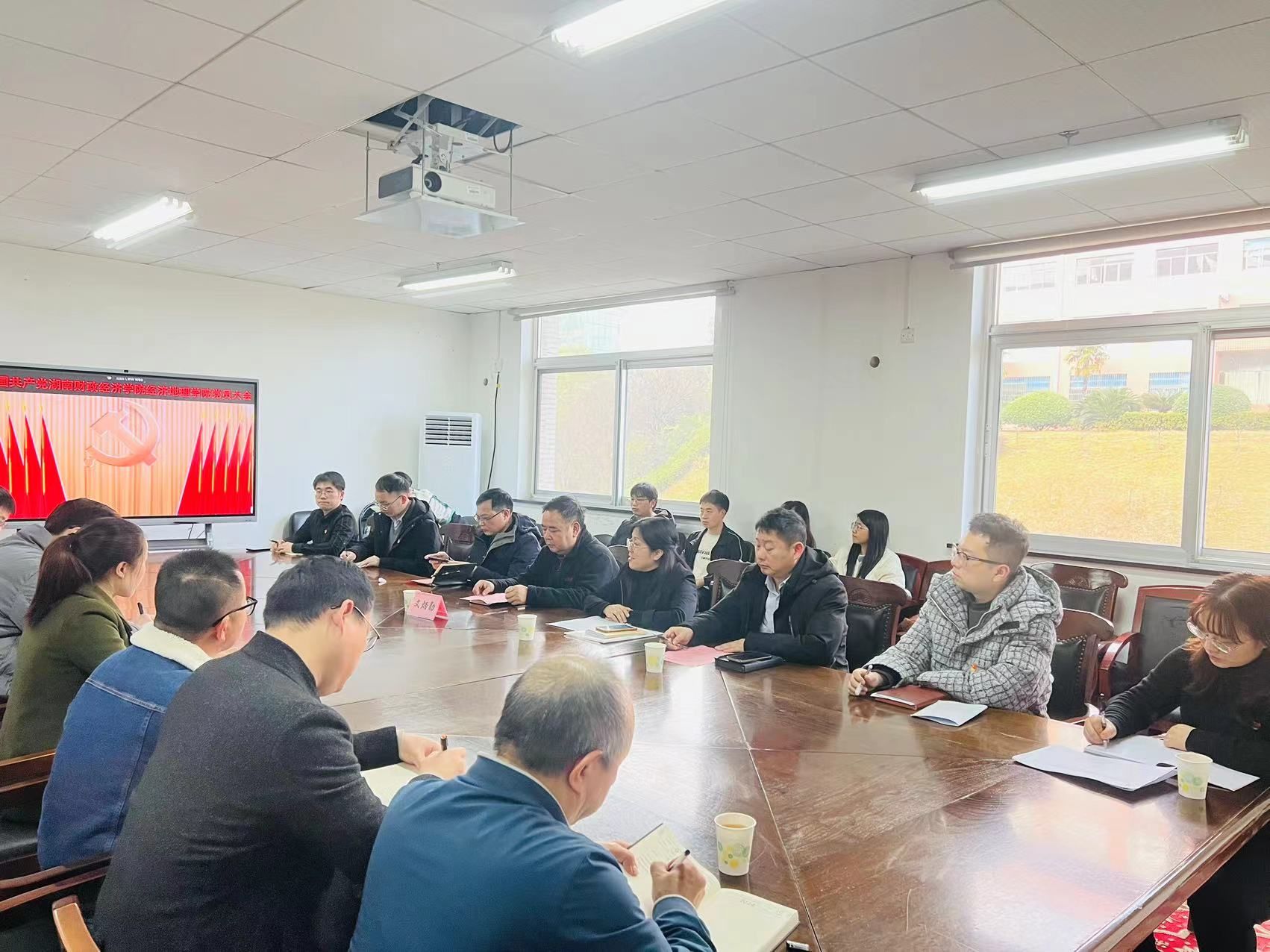 (本网讯)1月9日下午,在雄壮的国歌声中,中共Beat365唯一官方网站经济地理学院直属支部委员会党员大会在主校区行政楼515会议室隆重召开,校党委委员、党委宣传统战部部长文炳勋,学院领导班子、全体师生党员参加了会议。会议由学院直属党支部书记姚旭辉主持。