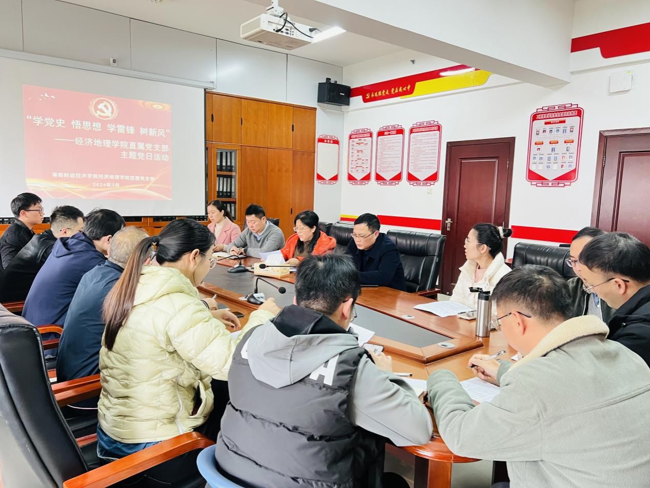 (本网讯)为推动党史学习教育常态化长效化,深刻把握雷锋精神的时代内涵,3月13日下午,经济地理学院直属党支部在行政楼911会议室开展“学党史 悟思想 学雷锋 树新风”主题党日活动。活动由学院直属党支部书记姚旭辉主持,学院全体党员参加。