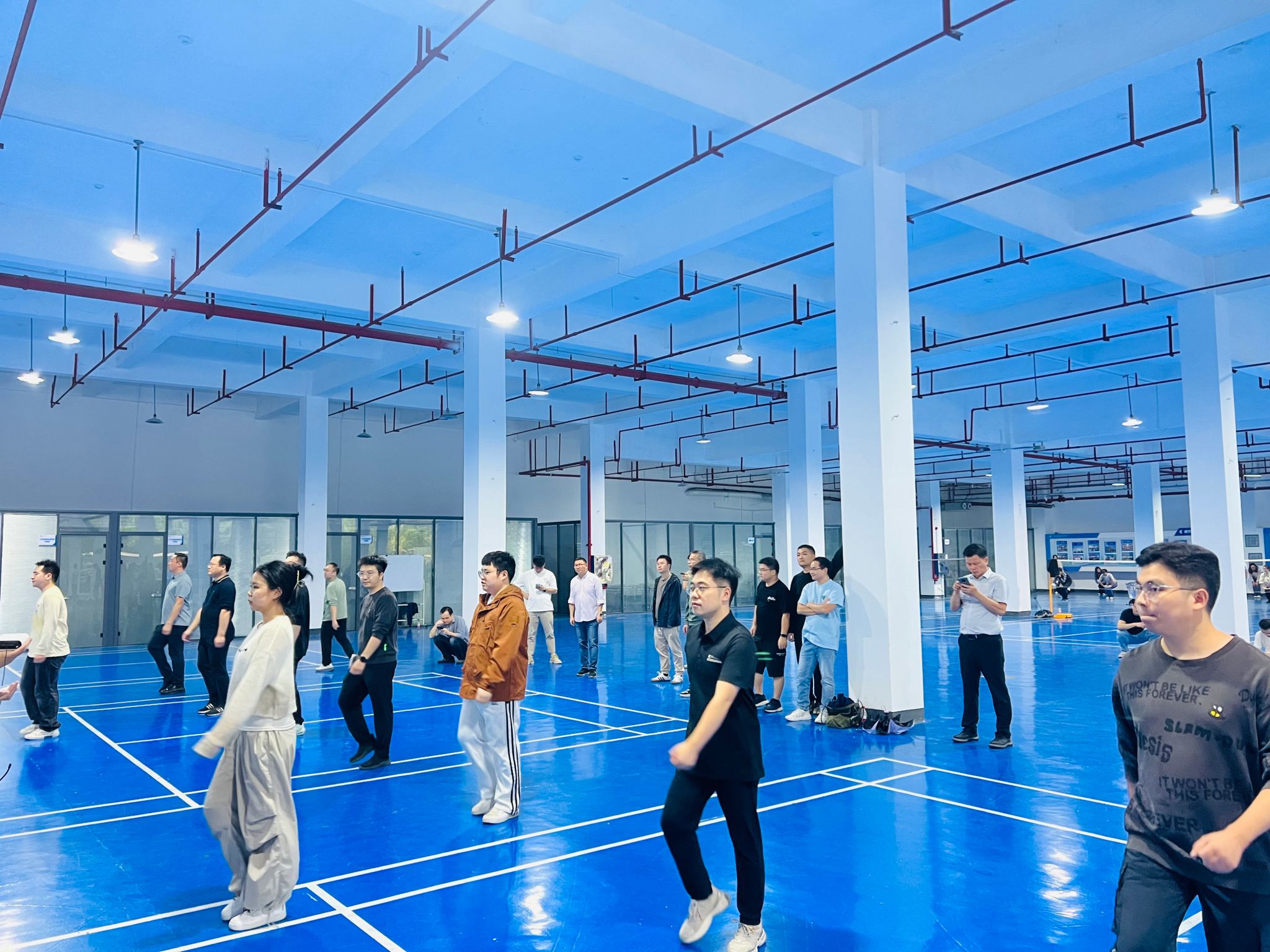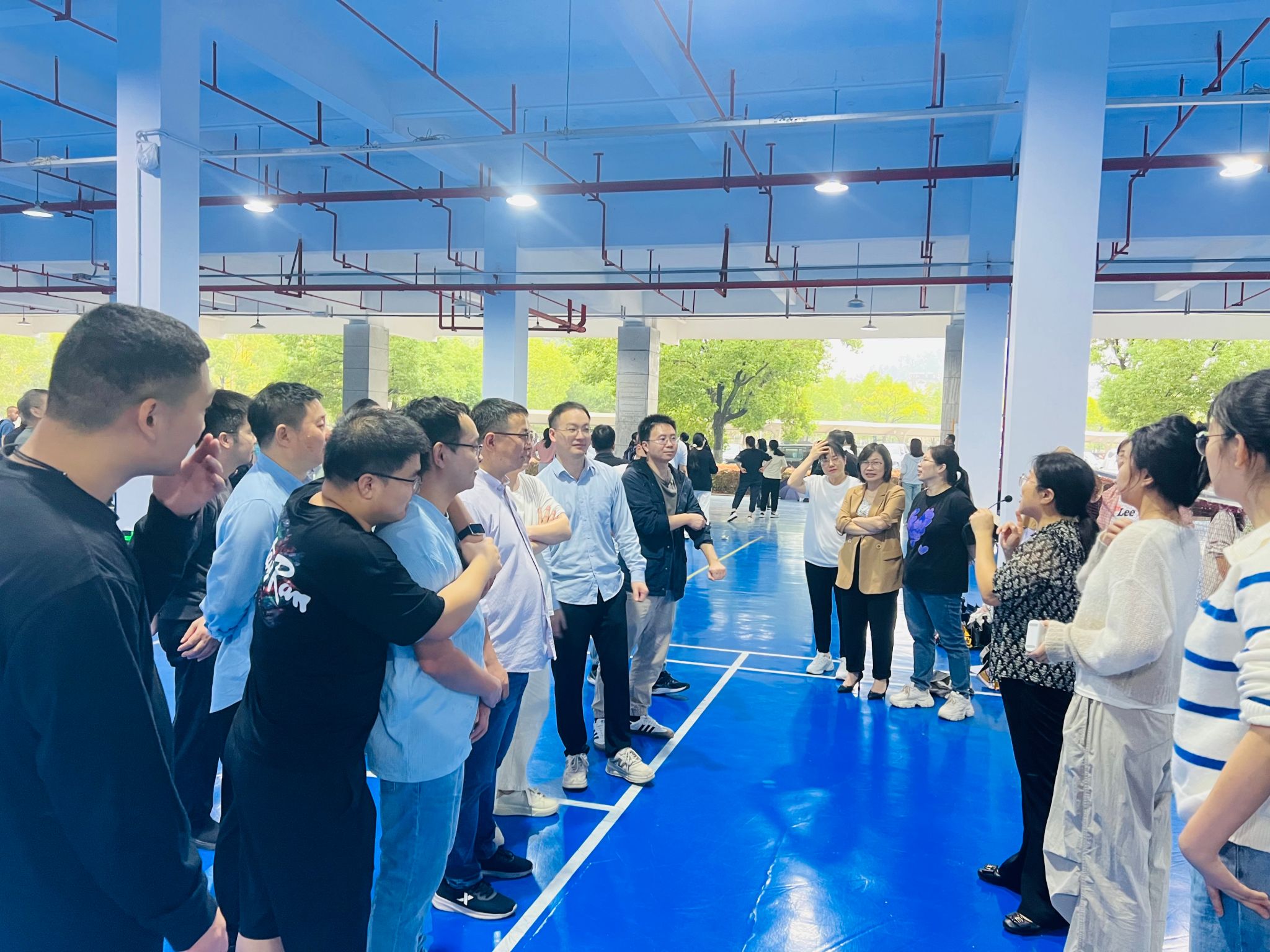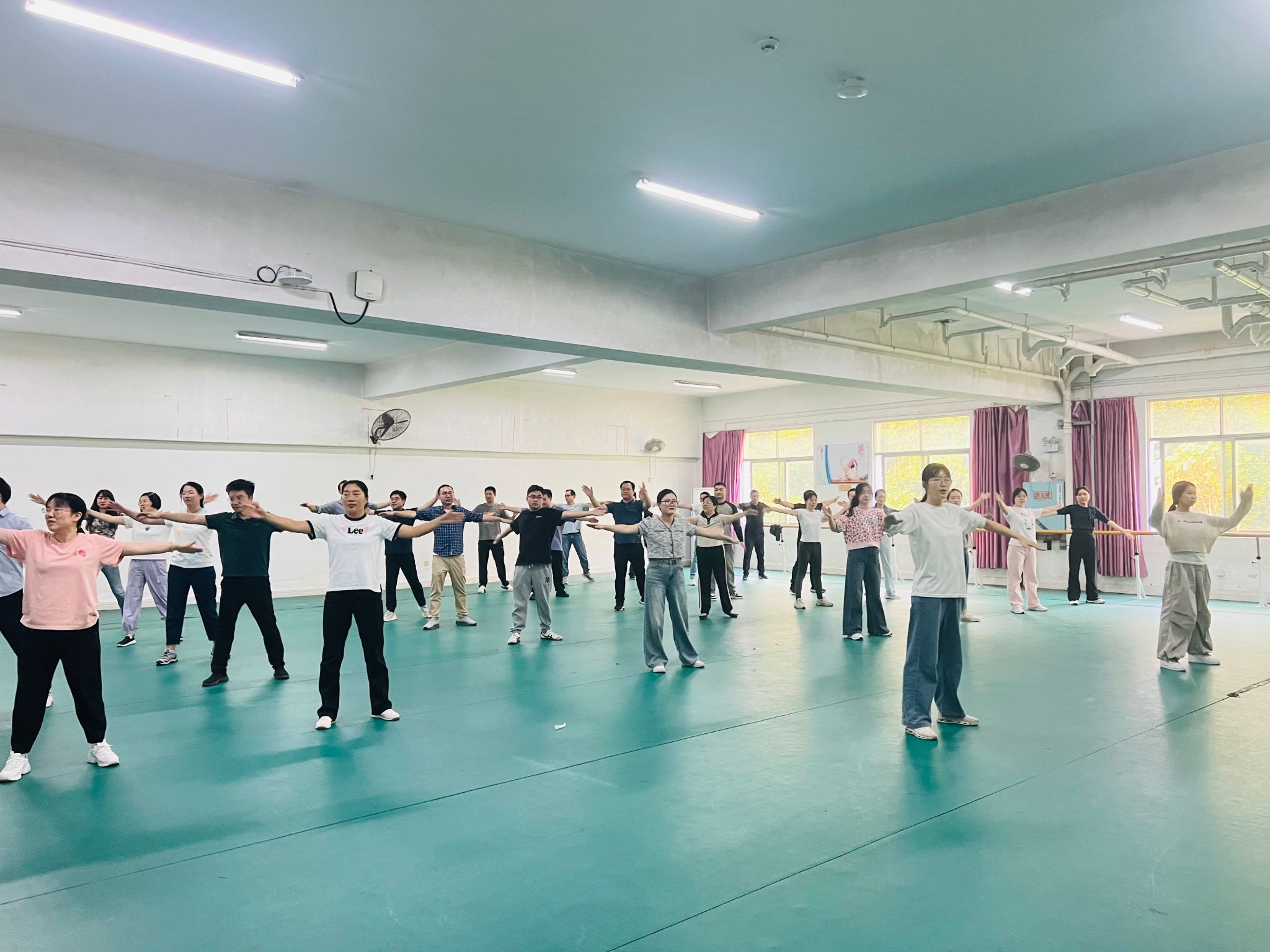 比赛前,学院领导和院分工会高度重视,通过精心策划、广泛动员和充分准备,号召全院教职工积极克服工学矛盾,利用业余时间组织了多次集中训练和彩排。领操人员详细地对第九套广播体操的每一节动作进行了分步讲解,并亲自示范正确的姿势和动作轨迹,确保每一位在场的教职工都能准确掌握动作要领。在领操人员耐心指导下,采取互促帮教模式,逐节细抠每一个动作,一排一排指导验收,参赛教职工的动作逐渐变得规范起来,每一步都凝聚着全院教职工的付出与汗水。