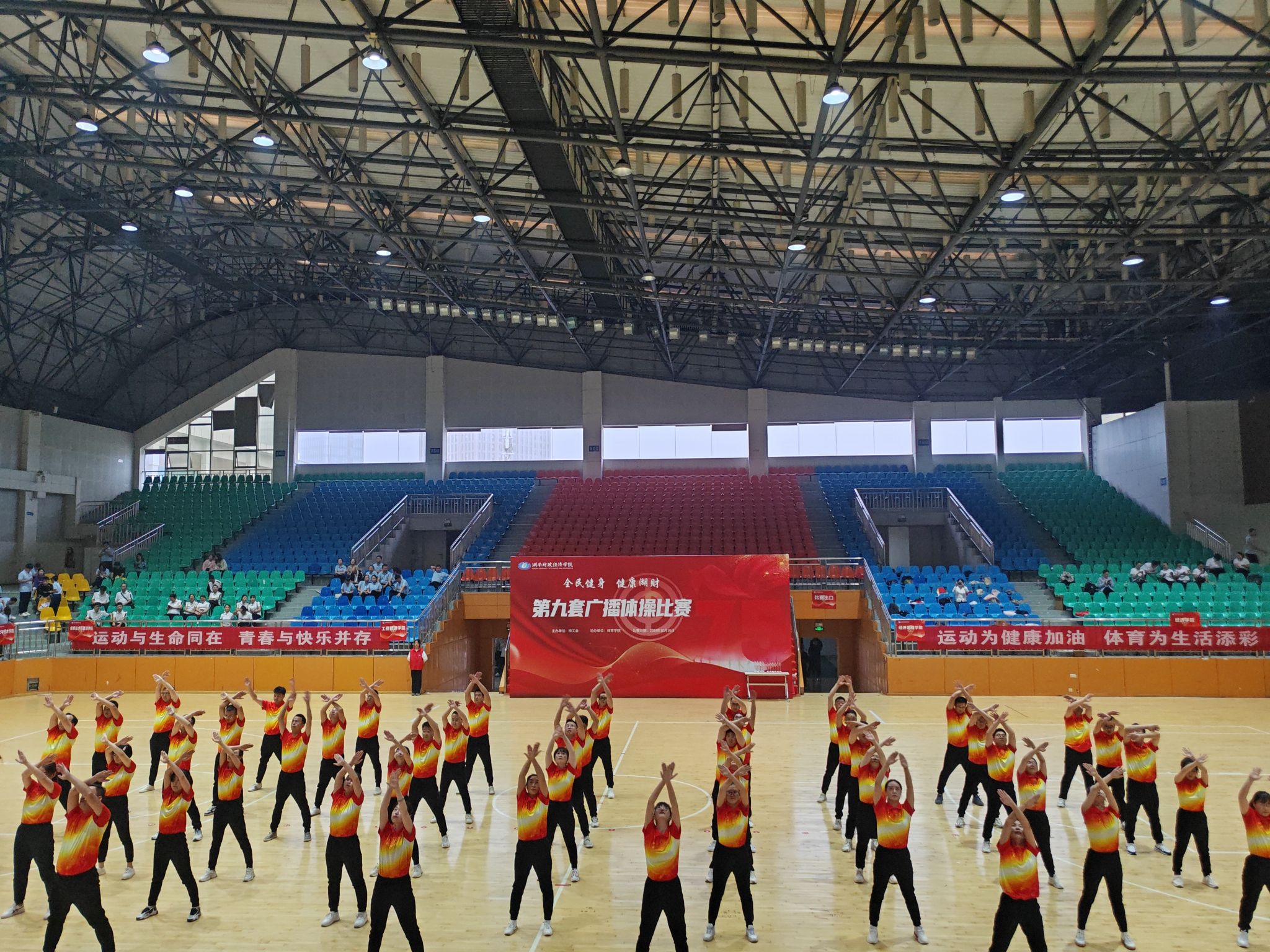 (本网讯)为大力推进教职工健身运动,丰富广大教师的业余生活,10月16日下午,由校工会主办,体育学院协办的“全民健身 健康湖财”2024年学校教职工第九套广播体操比赛于10月16日下午在主校区体育馆拉开了帷幕。全校共有18个分工会代表队参加比赛。