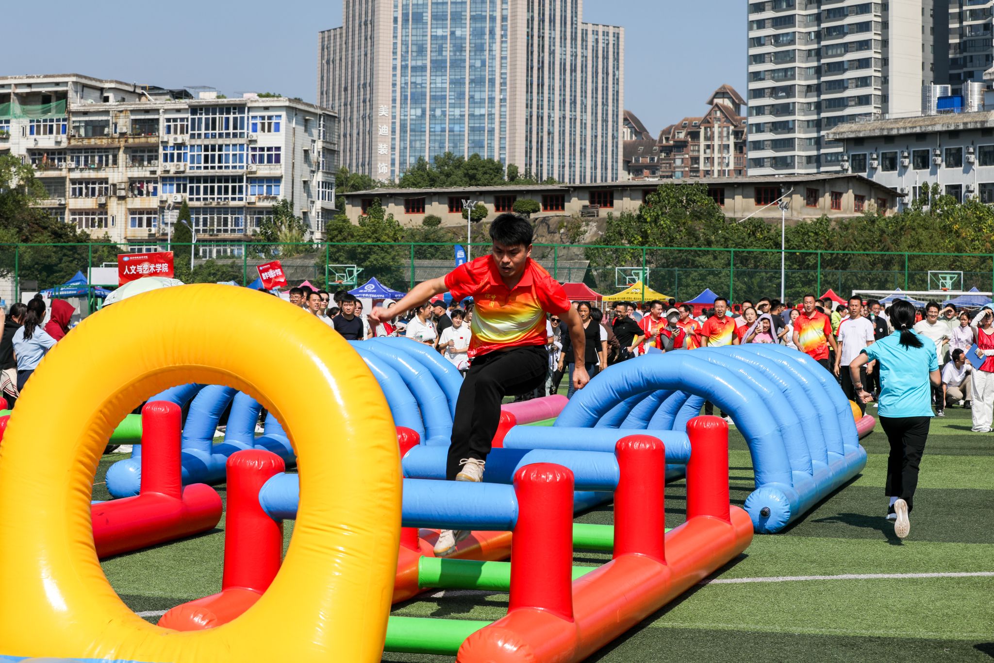 (本网讯)秋风送爽,阳光明媚,金桂飘香。为丰富教职工文体生活,提高教职工的身体素质和生活幸福感,10月25日,由学校工会主办的“迎评估 颂祖国”2024年教职工趣味运动会在主校区田径场举行。本次教职工趣味运动会以团体项目为主,全校共有18支队伍同台竞技。