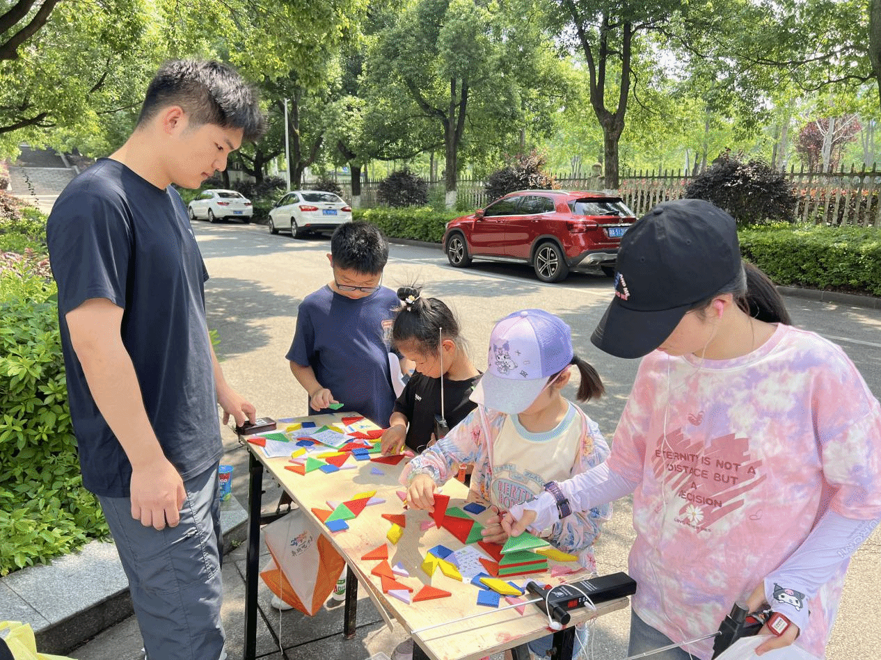 本次活动还设有套圈竞技、七巧板拼图和摸石头过河三项趣味关卡,亲子间默契配合,现场欢声笑语不断。