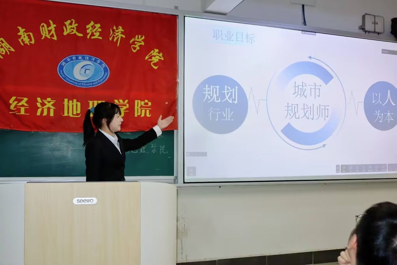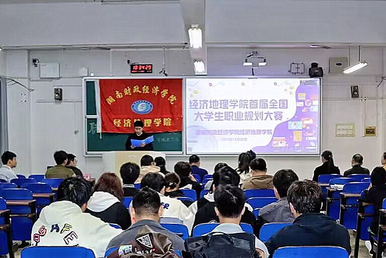 (本网讯)11月28日晚,经济地理学院首届全国大学生职业规划大赛(院赛)在主校区第三教学楼3103教室成功举办。学院院长彭文斌,院直属党支部书记姚旭辉出席本次大赛并讲话,副院长苏昌贵、学工办主任刘娟、各教研室主任及部分专业老师担任比赛评委。