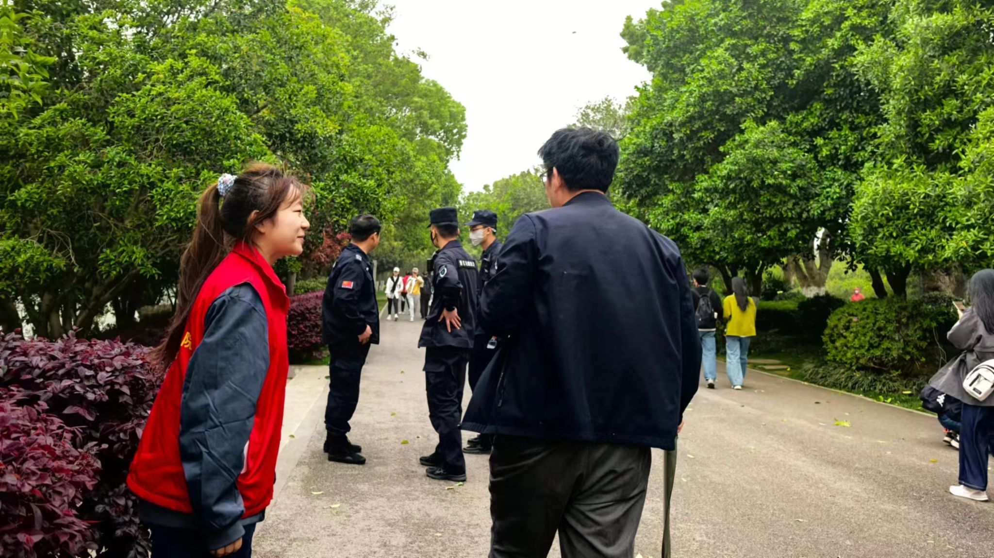 9时许,志愿者身着红马甲,乘观光小火车抵达毛泽东青年艺术雕塑区域。根据景区安排,两人一组驻守雕像广场周边的客流密集区,为游客提供景区导览咨询、指引公共设施方位、协助疏导密集区域人流、宣传环境保护理念。志愿者们以热情化解游客困惑,用脚步丈量服务温度,成为跳动在景区里的“青春坐标”。