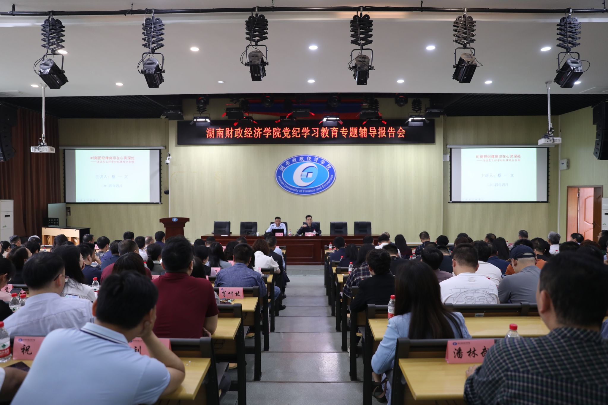 (本网讯)为扎实推进党纪学习教育走深走实,增强党员、干部学习贯彻《中国共产党纪律处分条例》(以下简称《条例》)的政治自觉、思想自觉和行动自觉,4月25日下午,学校邀请湘潭大学纪委副书记蔡一文作党纪学习教育专题辅导报告。报告会由纪委书记李雪山主持,全体在家校领导及副科级以上干部参加。