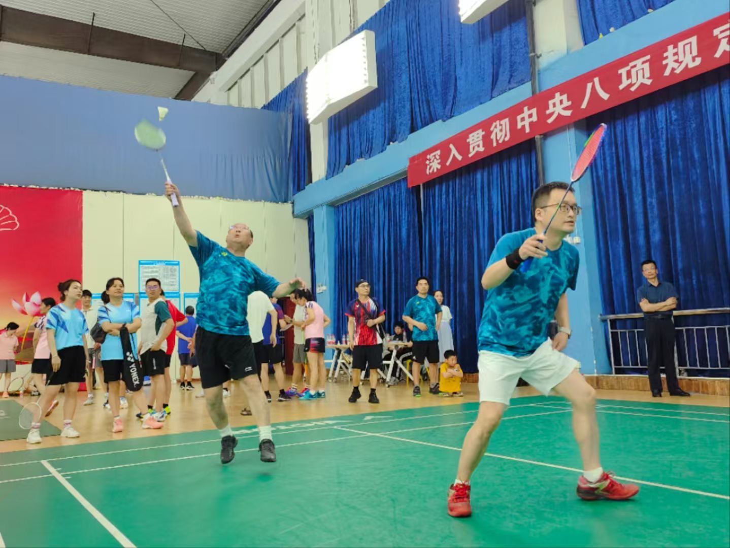 比赛打破传统赛制,将廉洁知识竞答与羽毛球竞技双线融合。参赛教职工通过书面答题展开“脑力比拼”,刘钟理现场揭晓竞答结果,以寓教于赛的形式推动廉洁教育入脑入心。在羽毛球竞技环节,男单、女单、男双、女双、混双五大项目轮番上演,淘汰赛与决赛层层递进,参赛队员默契配合、攻防兼备,扣杀、吊球、搓网等高阶技巧频出,充分展现团结拼搏的体育精神;赛场外,加油助威声此起彼伏,汇聚成鼓舞士气的最强音。