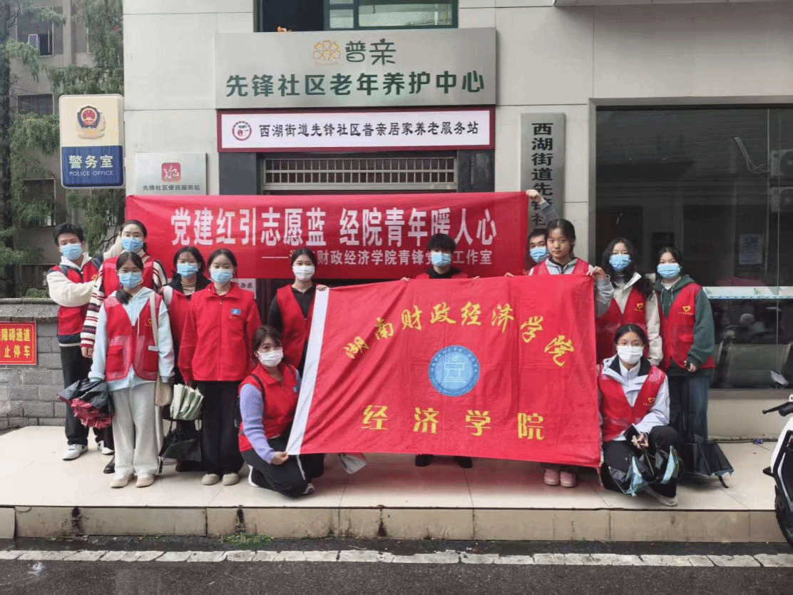 (本网讯)11月8日,在Beat365唯一官方网站“一站式”社区青锋党建工作室的指导下,经济学院学生党支部携手团支部开展“党建红引领志愿蓝,经院青年暖人心”志愿服务活动。数十名身着红马甲的志愿者深入普亲先锋社区老年养护中心,为老年群体提供情感关怀需求、特殊群体帮扶等志愿服务,成为疗养院一道亮丽的“青春风景线”。
