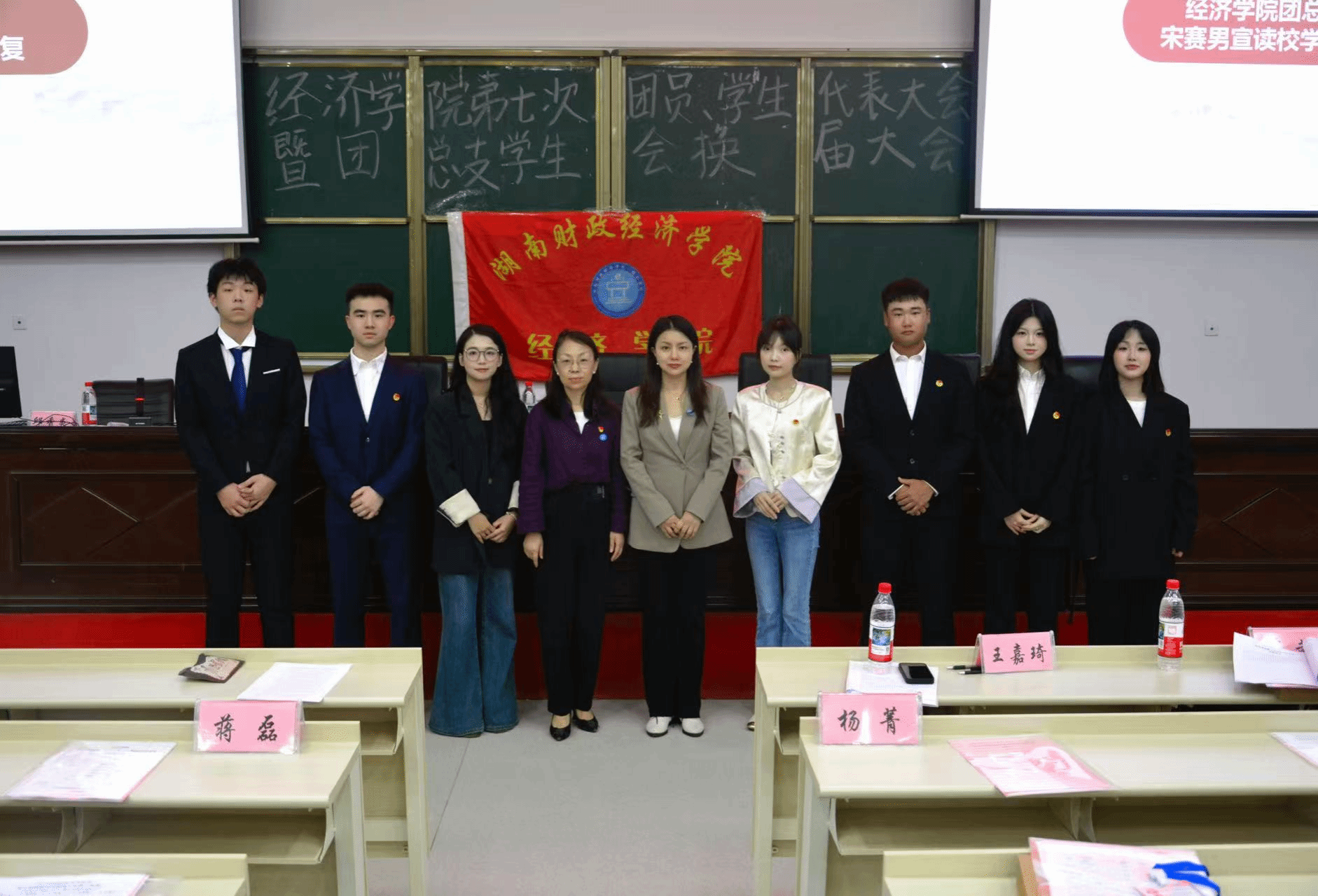(本网讯)9月23日,经济学院团总支学生会(以下简称“团学会”)在2J01教室召开了第七次团员、学生代表大会暨团总支学生会换届大会。经济学院党委副书记刘英、副院长陈雯、学工负责人兼学生支部书记谢龙、团总支书记宋赛男、学生支部书记欧璐、辅导员王竹青、各院嘉宾、经济学院学生代表和全体团学会成员出席了此次会议,大会由学生会秘书长邱香炎主持。