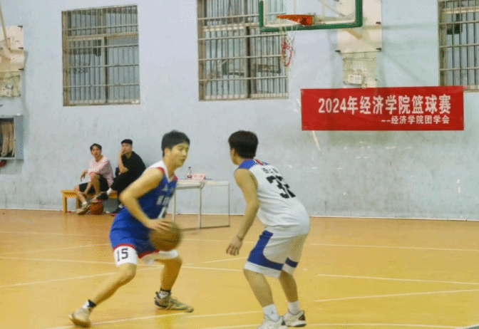 (本网讯)为了促进我院体育运动事业发展,丰富我院学子课余生活,经济学院2024年篮球赛于3月18日在篮球副馆正式开赛。经济学院党委副书记刘英以及经济学院团总支书记宋赛男出席了篮球赛的开幕式。