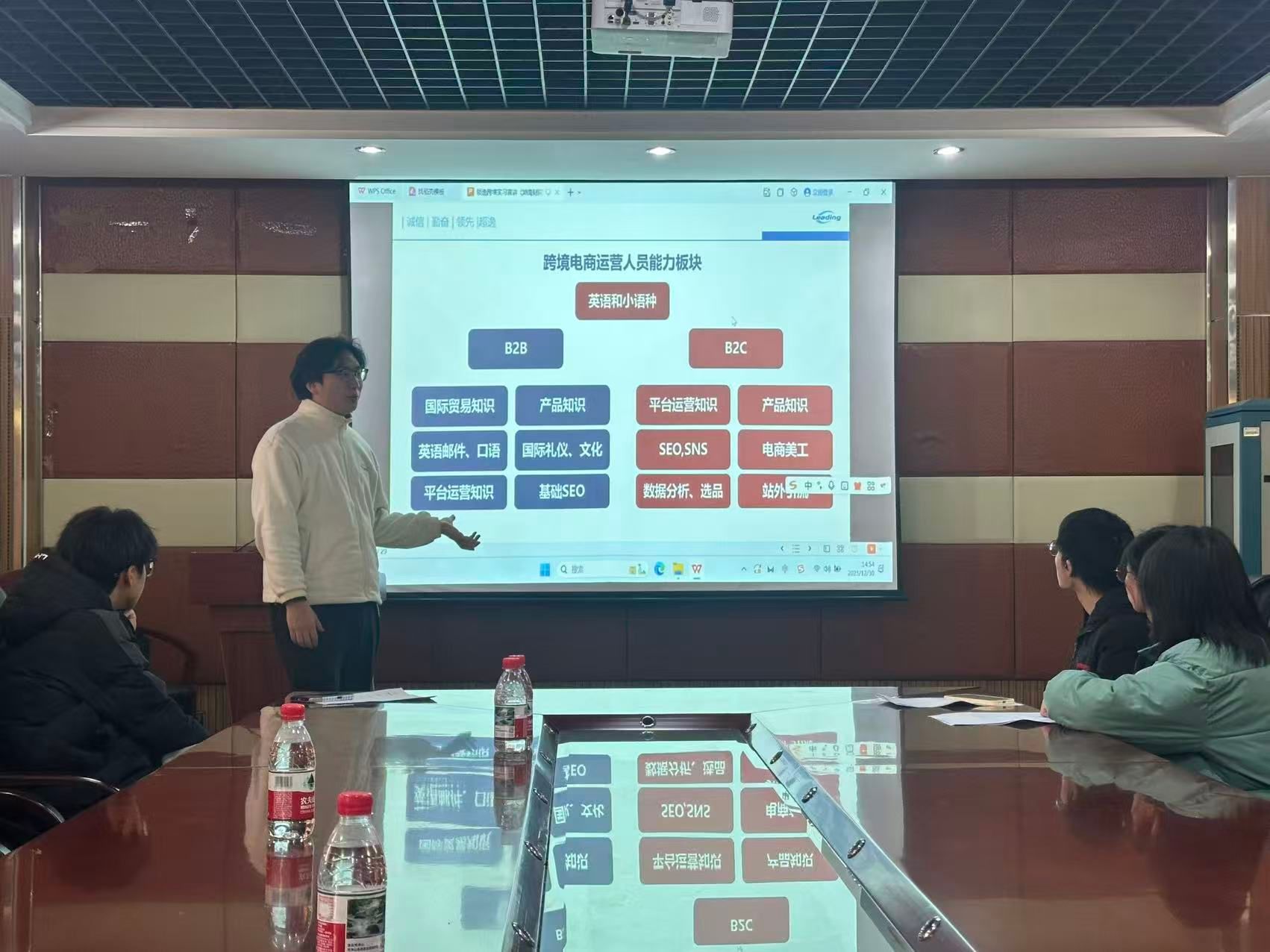宣讲环节,企业工作人员介绍了公司发展历程、核心业务、企业文化及人才体系,并结合案例解读了外贸行业趋势、关键领域实践要点及人才需求,并发布实习就业岗位,详解岗位要求、薪资福利等学子关切问题。