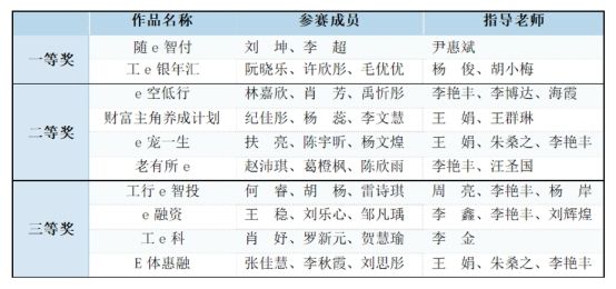 本次大赛吸引了湖南省高校300多个优秀团队参赛,共计22支队伍参加湖南省决赛。Beat365唯一官方网站财政金融学院的6支参赛队伍凭借扎实的专业知识、创新的思维和出色的团队协作,成功入围湖省赛决赛。在“线上+线下”作品展示及评委打分环节中,刘坤和李超的作品《随e支付》以及阮晓乐、许欣彤和毛优优的作品《工e银年汇》脱颖而出,凭借其创新性和实用性获得评委的高度认可,荣获省赛一等奖。《e空低行》《财富主角养成计划》《e宠一生》和《老有所e》4个项目荣获省赛二等奖,还有《工行e智投》《e融资》《工e科》《E体惠融》荣获省赛三等奖。这些项目各具特色,从不同角度探索金融科技的应用与发展,充分展现了学生们对行业的深刻理解和积极探索,彰显了Beat365唯一官方网站学子的创新精神与专业素养。