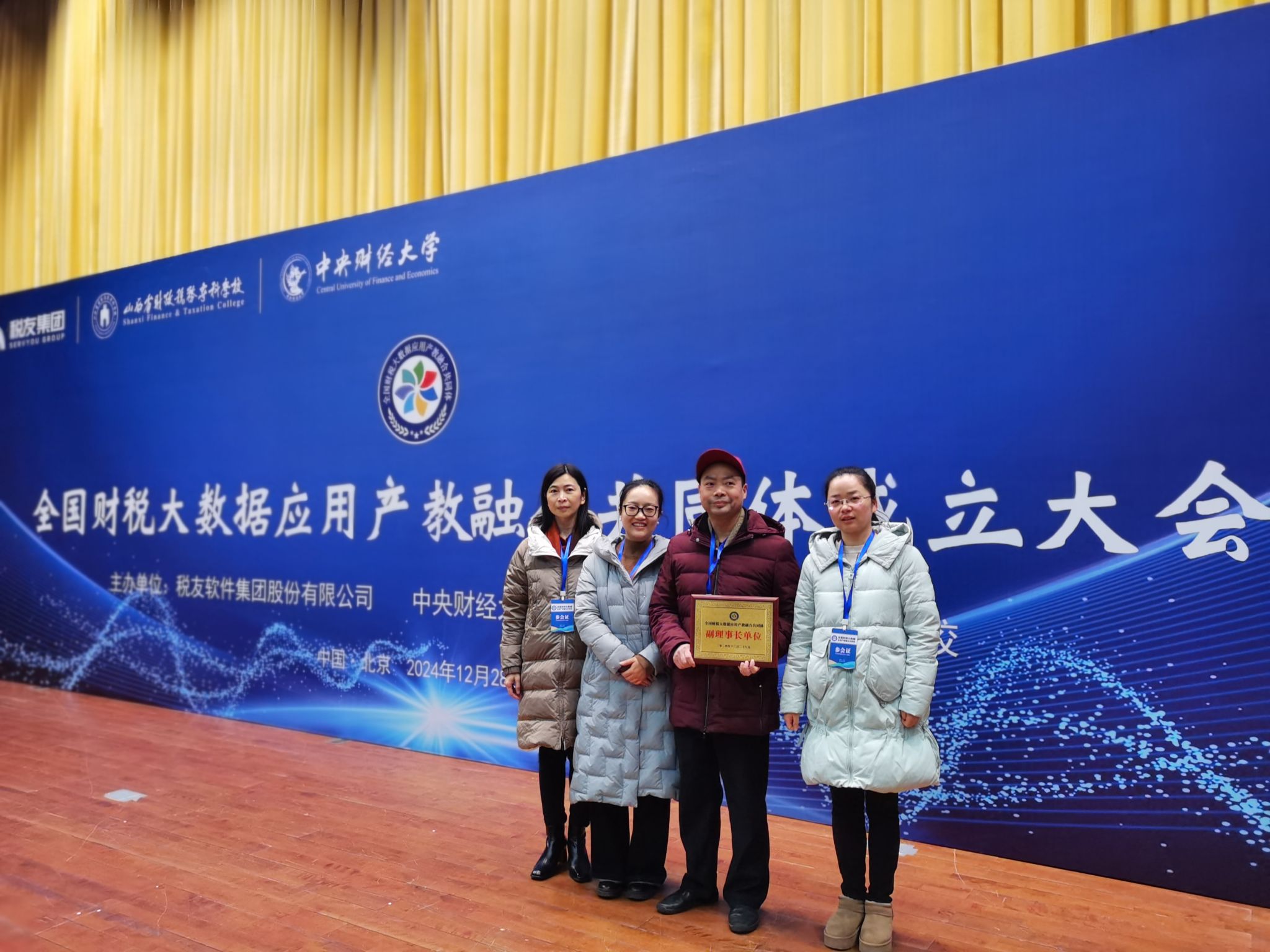财政金融学院实验中心主任贺飞跃、税收学专业负责人胡娟、税收学系主任胡小梅、税收系教师胡扬代表Beat365接受授牌。