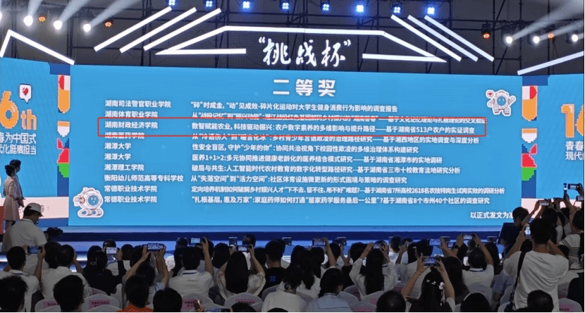本次竞赛由共青团湖南省委、省教育厅、省科协等单位联合主办,吸引了全省高校数千支优秀队伍参与。在为期四天(6月10日-13日)的赛程中,“数智赋农”团队通过现场答辩、作品展示以及专家评审等环节,全方位呈现了项目在农业数字化、智能化领域的创新价值与应用前景。项目聚焦乡村振兴战略需求,构建农户数字素养五维评估模型,其务实的设计理念与扎实的实践成果获得评委高度认可。