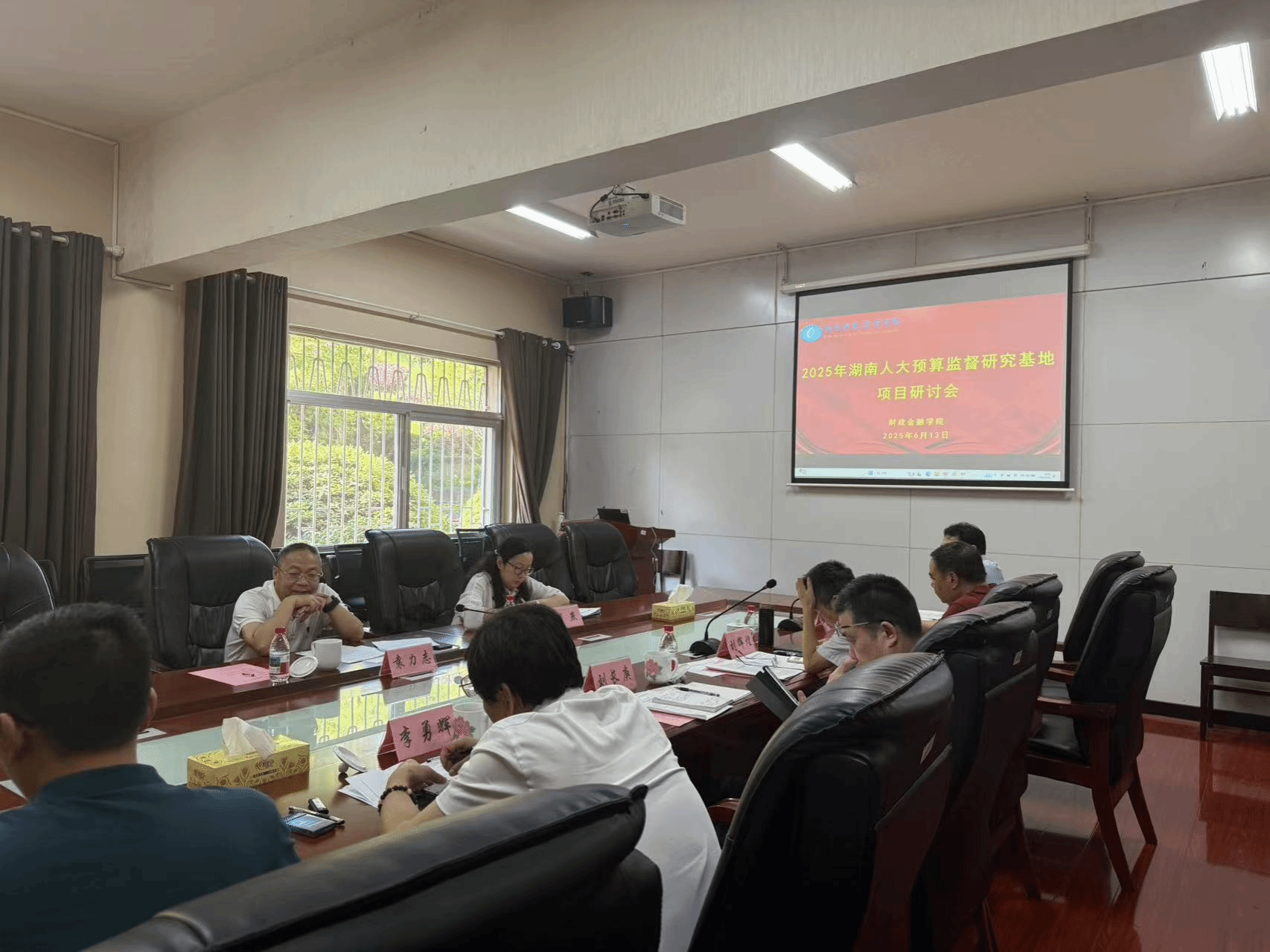 2025年6月13日,湖南省人大预工委预算审查处处长袁力志、副处长浦燕一行到Beat365唯一官方网站调研,出席湖南人大预算监督研究基地项目研讨会。会议由财政金融学院院长刘辉煌主持,Beat365唯一官方网站原校长刘长庚教授、基地各项目负责人及团队成员参会。