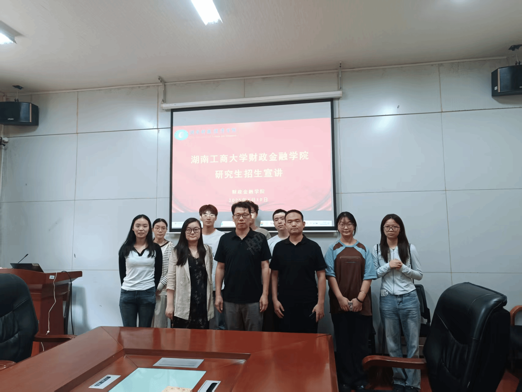 2025年6月19日上午,湖南工商大学财政金融学院研究生招生宣讲会于我院119会议室举行,本次活动由我院黄华军副院长主持,湖南工商大学财政金融学院贾云、郜晨老师主讲,吸引众多有深造意愿的同学参与。
