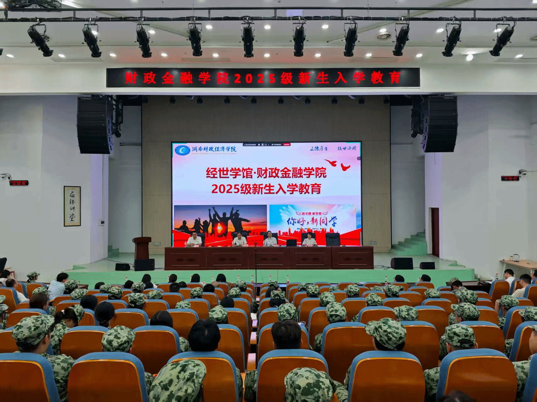9月13日下午,财政金融学院2025级本科生新生入学教育大会在雷锋书院隆重举行。院党委书记肖燕飞主持会议,院长刘辉煌,副院长李艳丰、黄华军,四办主任、各系主任、学业导师、优秀教师代表、优秀学生代表和2025级全体新生共同参与本次会议。
