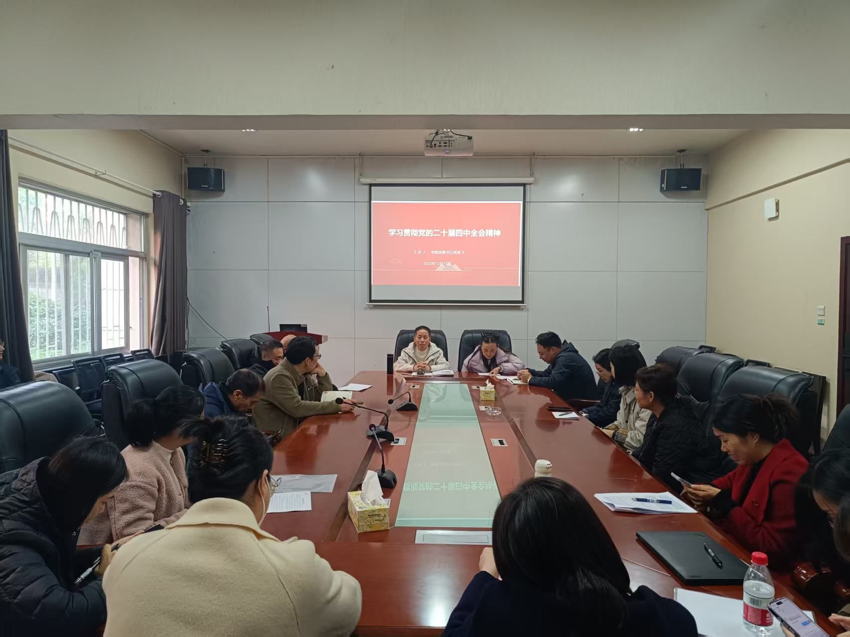 为切实筑牢党员教师政治思想根基,凝聚教育奋进力量,推动党的二十届四中全会精神落地见效,12月10日下午,学院党委书记肖燕飞在办公楼119会议室,为全体党员教师讲授“深入学习贯彻党的二十届四中全会精神”主题党课,引导党员教师精准把握全会核心要义,明晰育人使命担当。肖燕飞书记围绕全会精神展开系统解读,重点阐释了全会审议通过的“十五五”规划《建议》的核心内涵,细致梳理“十四五”时期我国在经济增长、科技创新、民生保障等领域取得的丰硕成就,...
