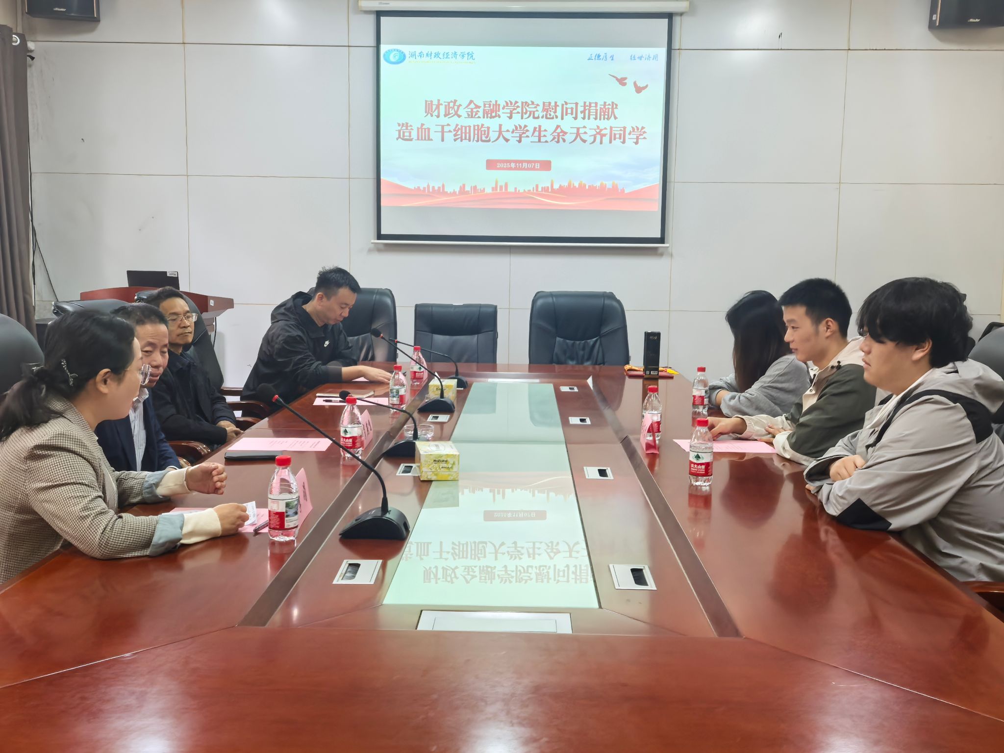 11月7日上午10点,财政金融学院在119会议室召开座谈会,慰问成功捐献造血干细胞的大学生余天齐同学。学院院长刘辉煌、党委书记肖燕飞、学工办主任易好、辅导员李娟及学生代表参加会议,会议由易好老师主持。会议现场 刘林涛/摄会上,辅导员李娟详细介绍了余天齐同学捐献造血干细胞的全过程,对其勇担社会责任的行为给予高度肯定。余天齐同学分享了捐献经历,他表示能以己之力挽救生命,是责任更是荣幸,言语间尽显湖财青年学子的担当。...