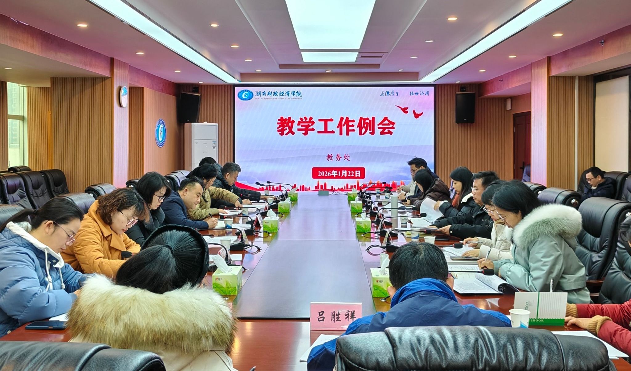 2026年1月22日上午,学校在办公楼715会议室召开教学工作例会,总结梳理近期教务工作,部署期末及下一阶段重点任务。会议由校党委委员、副校长潘爱民主持。教务处、教学质量监控与评估中心及各二级学院分管教学工作副院长参加会议。