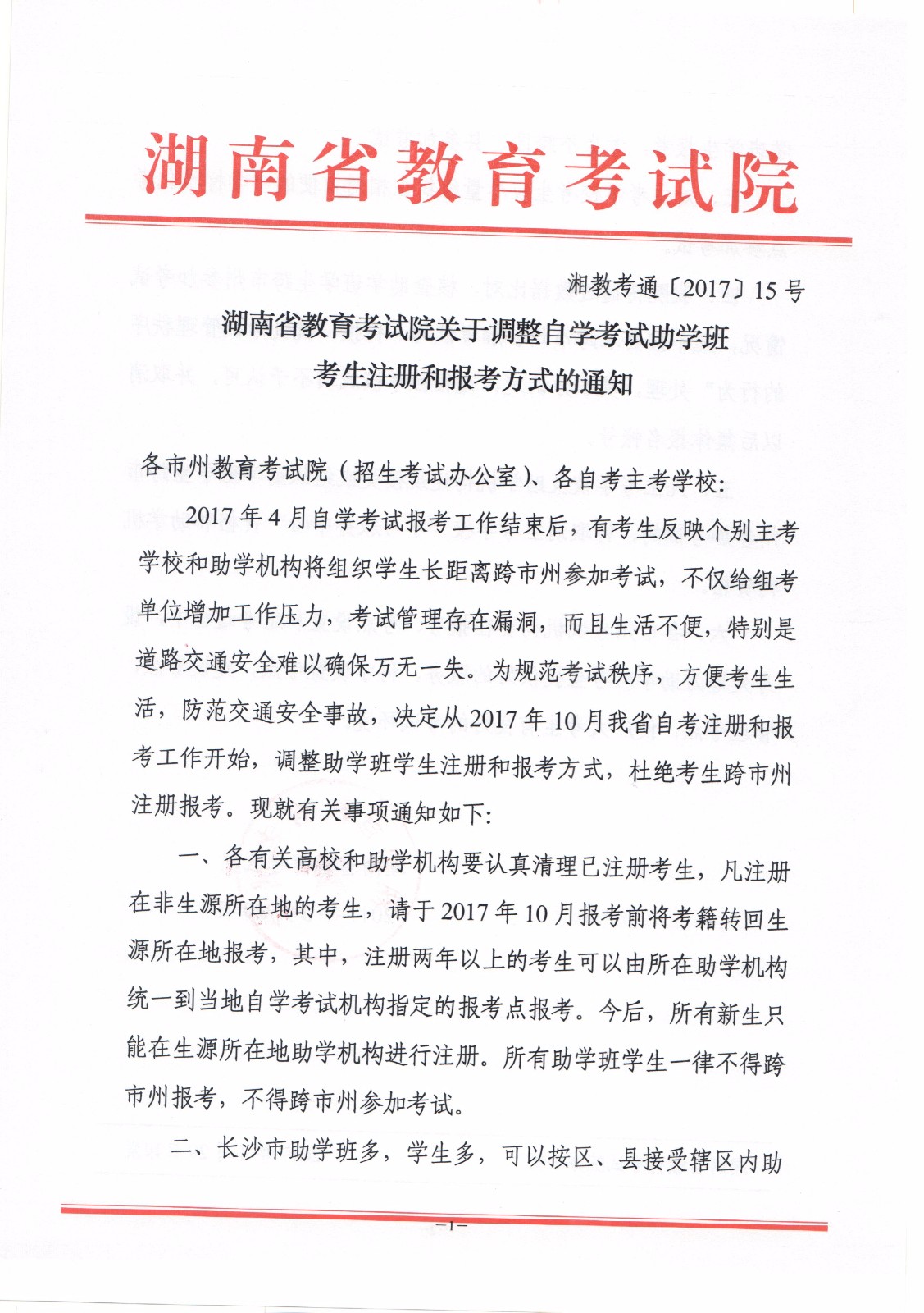 关于调整自学考试助学班考生注册和报考方式的通知