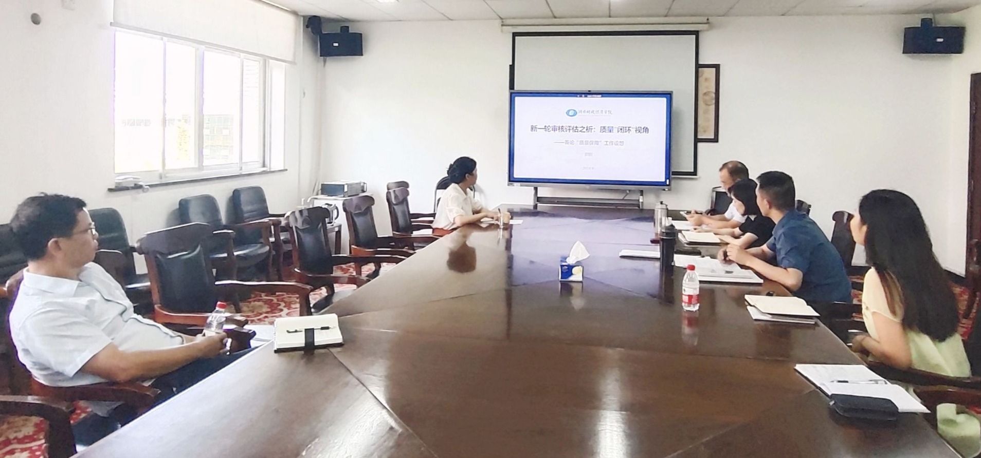 会上部门全体成员依次就暑期学习、工作情况进行汇报,进一步加强对教学质量监控与评估相关知识的了解。副主任王依要求大家工作细致认真,科学有效办公;加强数据处理,做好数据收集、完善填报工作;相互配合,及时沟通,共同完成教学质量监控与评估工作。
