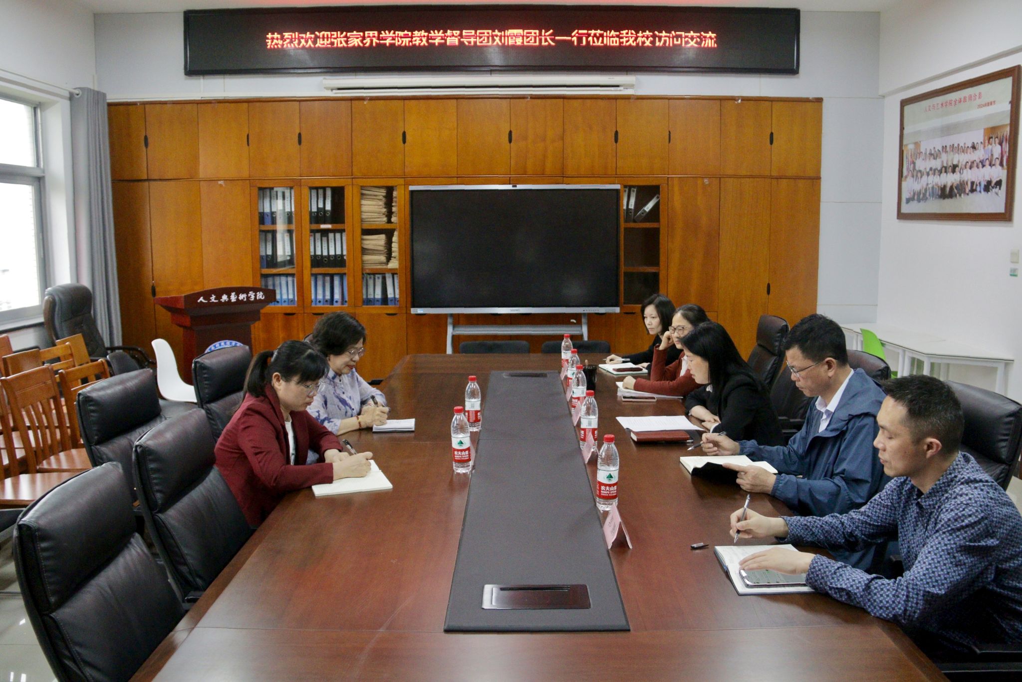 4月16日下午,张家界学院教学督导团团长刘霞一行来校访问,校教学质量监控与评估中心主任邓永红、校督导团团长陆初卿、团长助理郭鹏、专职督导魏瑾、质评处教学质量科高霞等在学校办公楼817会议室参与交流。