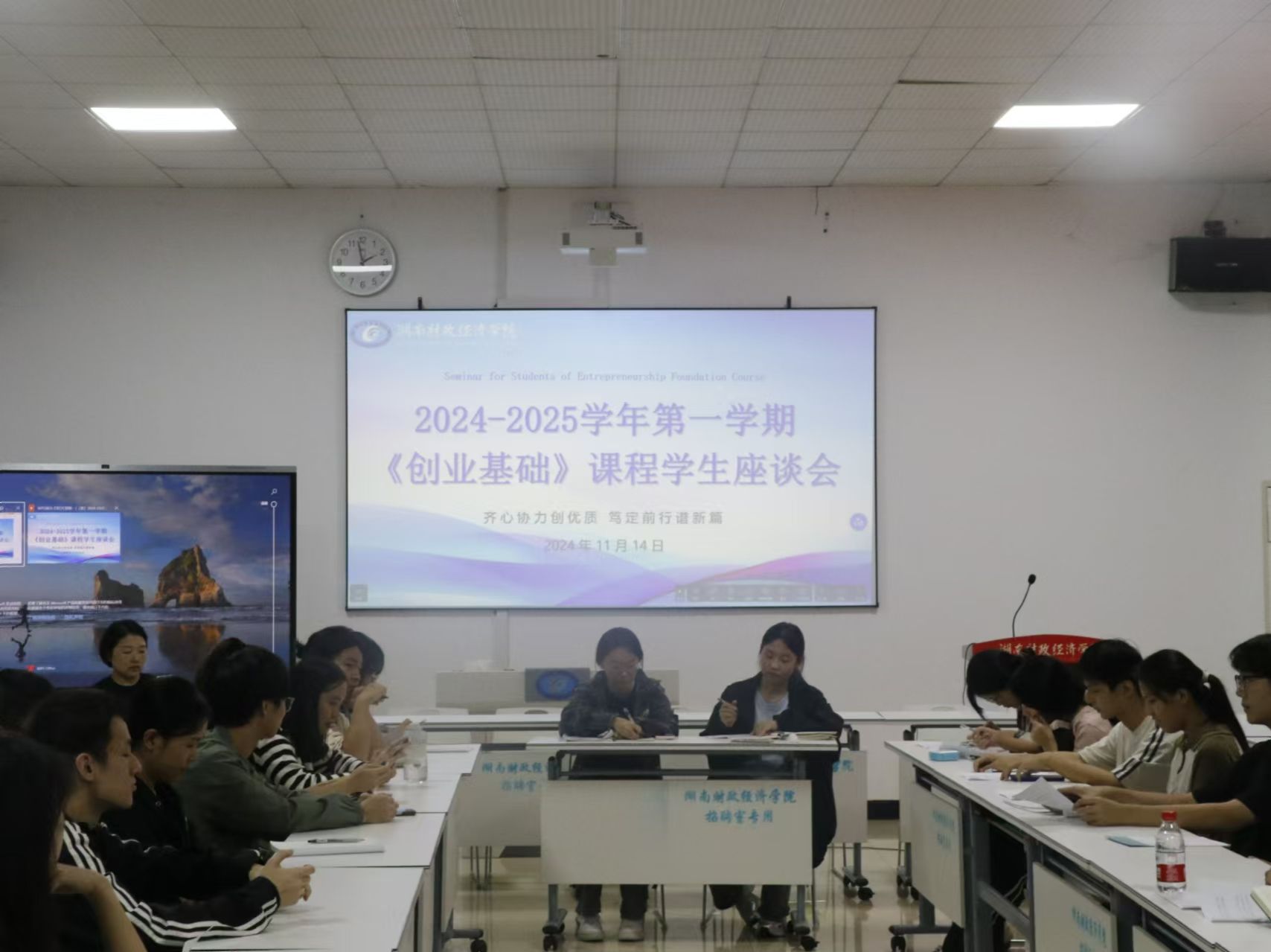 11月14日晚,Beat365就业创业中心在体育馆一楼多媒体招聘室召开了《创业基础》课程学生座谈会,会议由大学生创新创业指导教研室负责人周雪主持,2023级各班学生代表参会。
