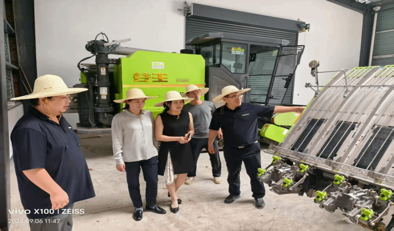 在基地农机车间,“谷王”系列智能农机装备映入眼帘。技术人员现场演示农机的数字化功能:依托北斗导航、AI 图像识别,设备可实现精准播种、无人收割,大幅提升作业效率。