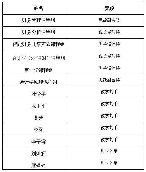 根据《关于持续开展“全员磨课、打造金课”磨课活动的通知》(湖财教通〔2025〕79号)要求,经个人申报、系中心推荐、学院评审、公示等环节,现将磨课成果奖项予以公布。