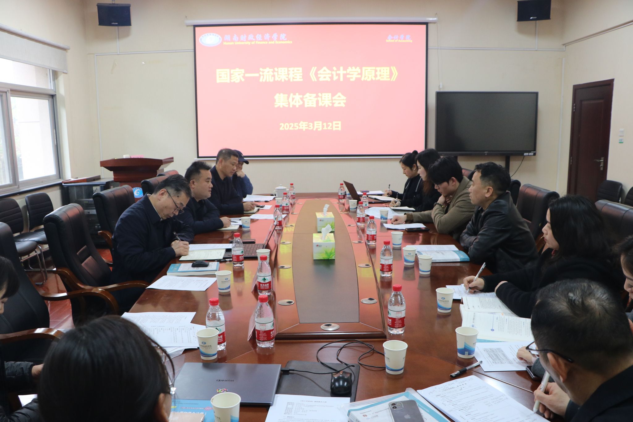 (本网讯)3月12日下午,会计学院在办公楼215会议室开展国家级一流课程《会计学原理》集体备课会。副校长潘爱民、教务处处长李茂平、会计学院院长潘彬、督导组王颖梅、汤孟军以及课程组全体教师参加会议。