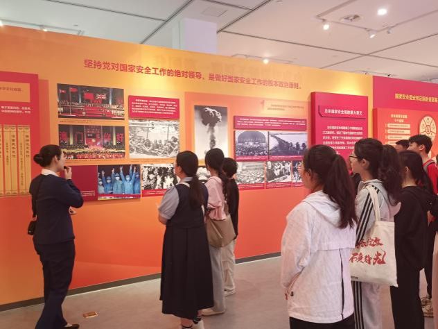 湘江潮涌,十年奋楫。2013年以来,习近平总书记先后四次到湖南考察,就统筹发展和安全多次作出重要指示。今年3月18日至21日,习近平总书记在湖南考察时强调“要坚持高质量发展和高水平安全相互促进,努力提升粮食能源资源等重点领域安全保障能力”,突出了国家总体安全观的重要性。在讲解员的引导和讲解下,全体团员沉浸式观看了总体国家安全观的科学内涵、湖南实践、构建新安全格局宏伟愿景等展陈内容,全面了解了总体国家安全观的演进脉络、时代背景以及“五大要素”“五个统筹”“十个坚持”等核心要义,切身感受了总体国家安全观的真理力量和实践伟力。班级团员张佳祎同学说:“‘安而不忘危,存而不忘亡,治而不忘乱’,青年大学生作为时代新人,应不断提高安全意识,护好国家安全防火墙的墙体,维护国家安全环境。”