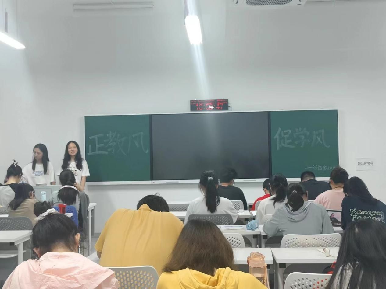 (本网讯)随着五一假期的临近,为确保同学们度过一个安全、健康、充实的假期,2024年4月28日晚上,23级会计八班于L1511教室组织了一场以“安全、禁烟、学风建设”为主题的班会。本次班会由班长钱学榕和副班长谢佩芳主持,全班同学共同参与。
