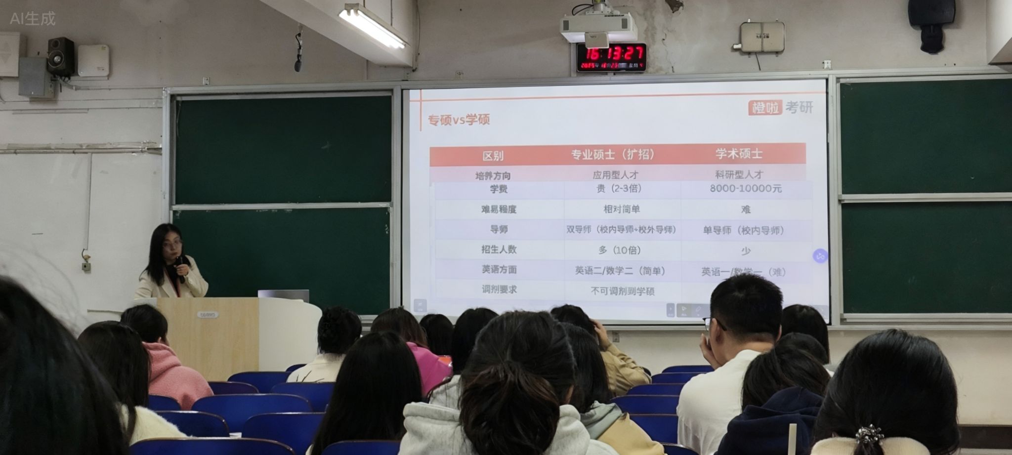 本次会议邀请到了拥有考研八年一线辅导经验的陈老师作为主讲为大家分享经验。在讲座中,陈老师围绕“考研常识”“择校指导”“学习有方法”三大模块展开深度分享。她先系统讲解考研流程、公共课与专业课考查重点等基础常识,帮助学子建立清晰认知;接着聚焦择校这一关键环节,结合学科特点与就业趋势,传授科学的院校专业筛选策略;最后从时间管理、高效学习技巧等维度,为学子定制化输出备考方法体系,全程逻辑清晰、干货密集,为2026届考研学子铺就了一条明晰的备考路径。