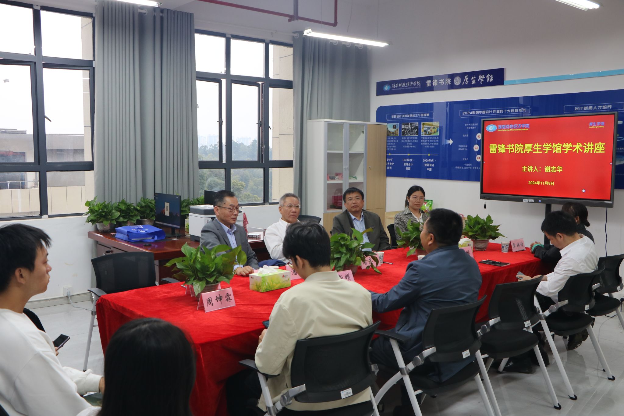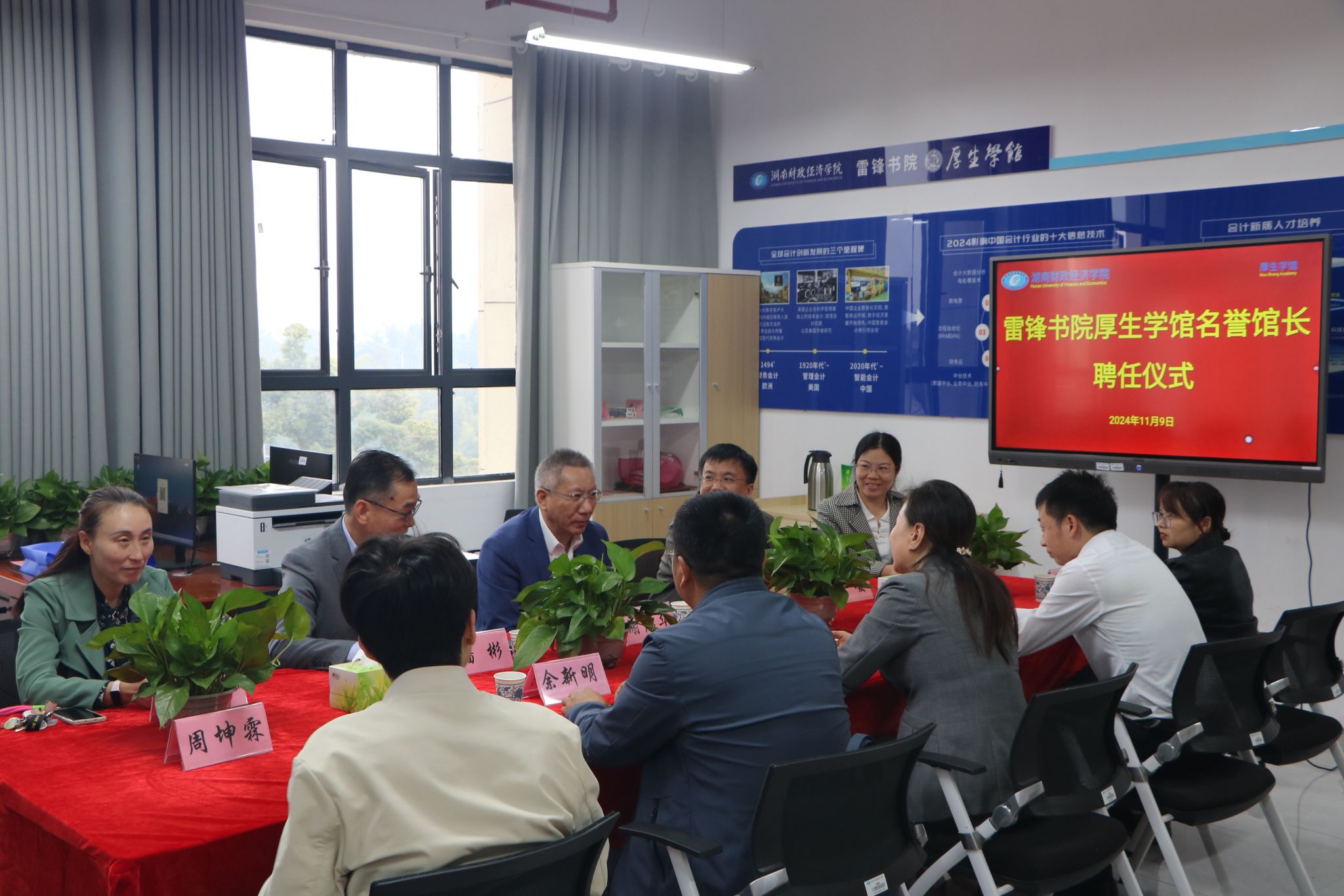 (本网讯)2024年11月9日下午,厚生学馆在至诚楼学馆内举行名誉馆长聘任仪式。北京工商大学原副校长、教育部工商管理学科指导委员会副主任委员、财政部“会计名家”谢志华教授受聘,担任厚生学馆名誉馆长。校党委副书记苏玲、会计学院院长潘彬、工商管理学院院长杨鹏,雷锋书院直属党支部书记余新明,会计学院与工商管理学院领导班子成员、三办主任以及学生代表出席了聘任仪式。仪式由潘彬主持。