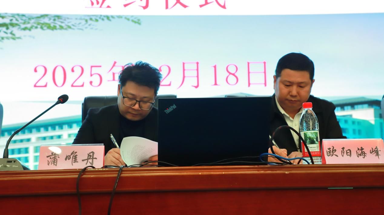 欧阳海峰与蒲唯丹代表双方签订合作协议,标志着两校在心理危机预防、干预与专业支持方面正式建立联动机制。