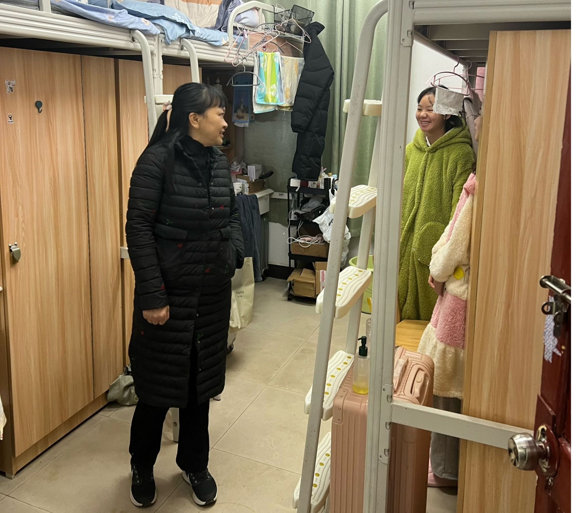 在巡查过程中,党支部副书记黎红梅带领辅导员深入学生寝室,确保学生寝室的用水用电安全,并提醒学生正值年关要提高自身的反诈意识,保护好自己的人身财产安全。