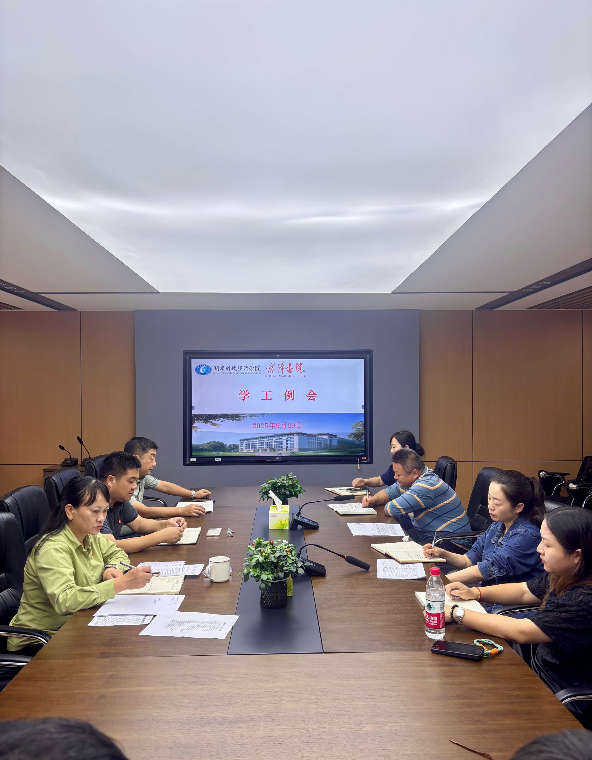 9月29日上午雷锋书院在行政楼205会议室召开学生工作会议,此次会议由雷锋书院直属党支部副书记黎红梅主持,雷锋书院直属党支部书记余新明、副书记袁冶、及学工办全体人员参加会议。