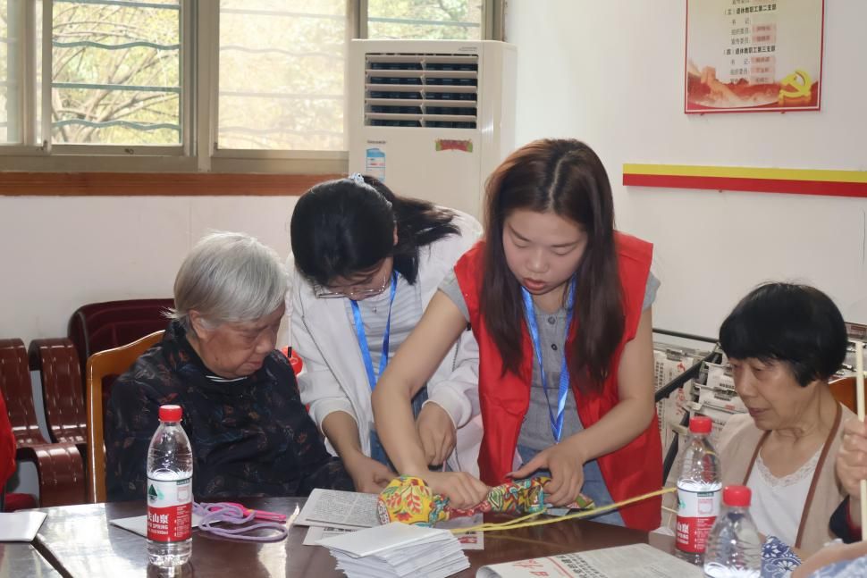 春意渐浓,艾草飘香,正是养生的黄金时节。志愿者们手把手教退休教职工制作艾草养生锤,从揉捻艾绒、调整填充松紧到巧妙缠绕布艺,每一个步骤都细致讲解,确保做出的养生锤兼具美观性与实用性。同时,志愿者们穿插讲解经络拍打技巧,现场示范科学拍打节奏与力度,加强退休教职工对养生和健康理念的重视,让温暖与健康在指尖传递,为他们的生活增添一份舒心与惬意。