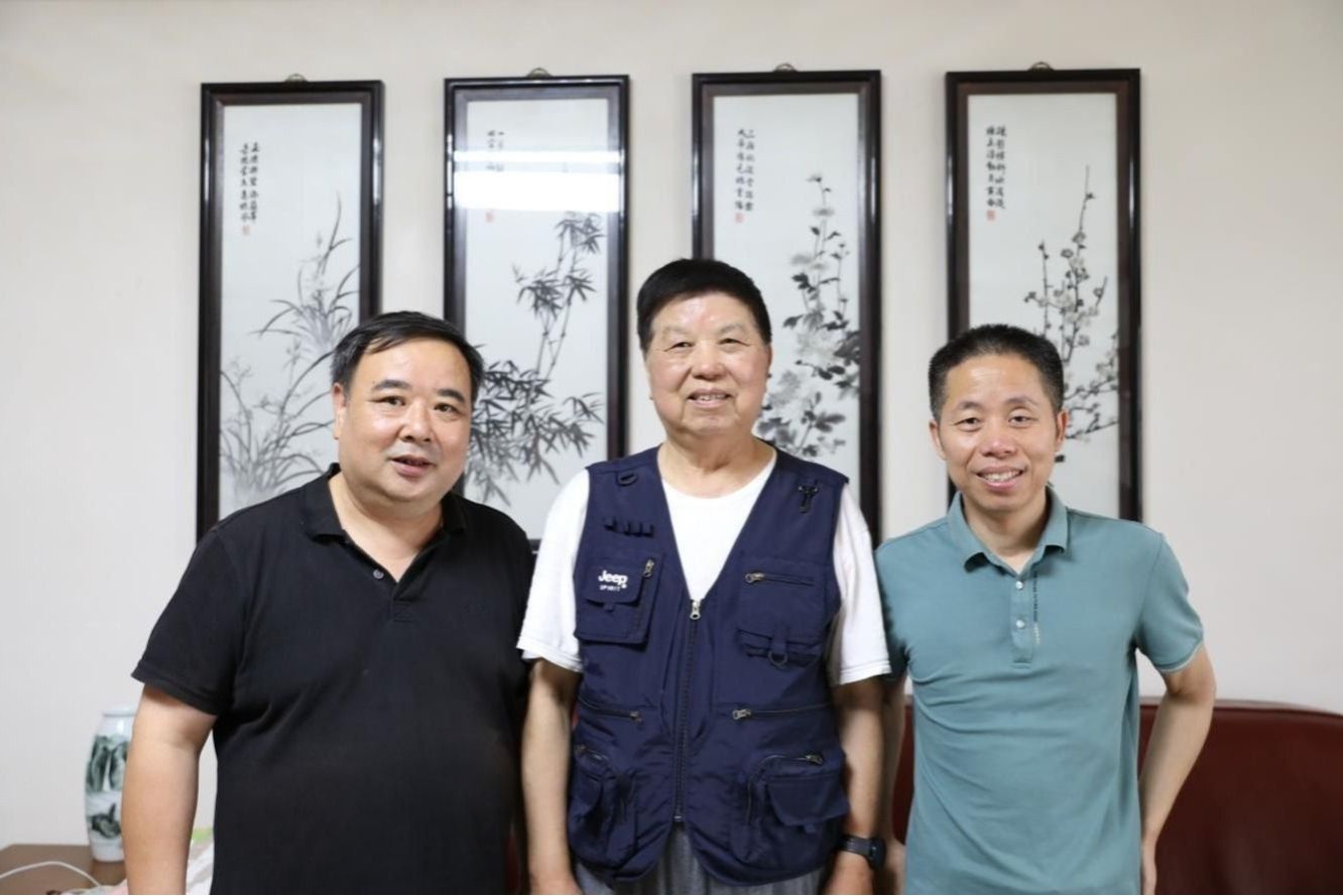 校党委委员、宣传统战部部长文炳勋(左)慰问老党员吴耀武(中) 肖萌/摄