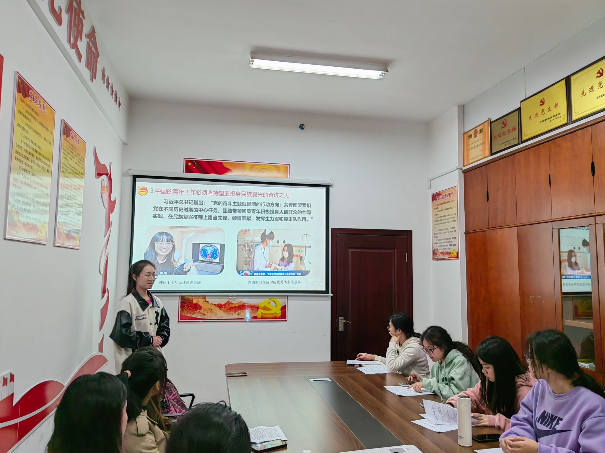 为扎实推进习近平新时代中国特色社会主义思想主题教育,加强对青年学生的政治引领,11月20日下午,马克思主义学院在办公楼227活动室举办“凝心铸魂新思想,砥砺奋进新征程”主题微团课活动初赛。院团总支书记周雄艳出席,活动由院团总支副书记李冉主持。