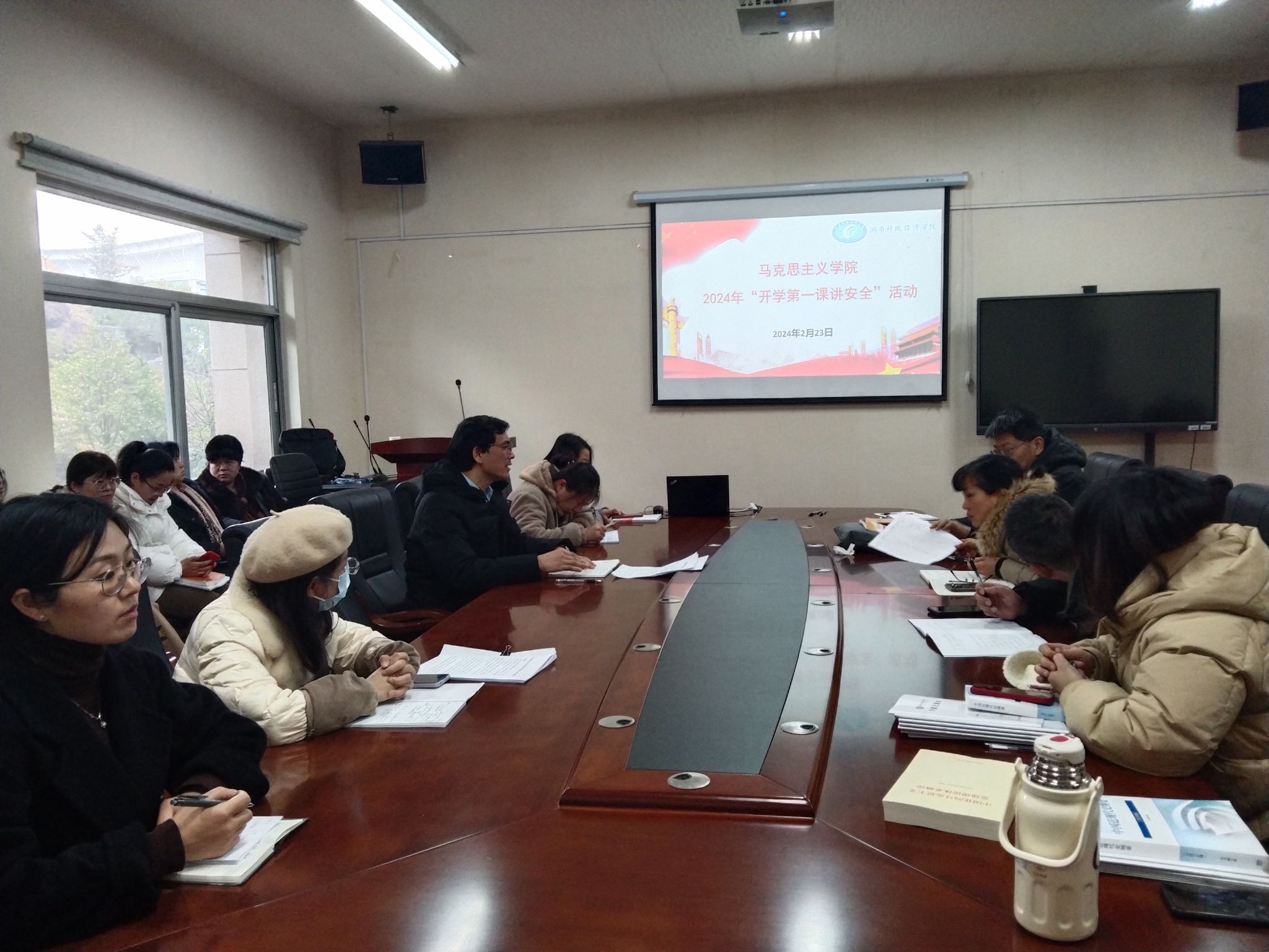 2月23日上午,马克思主义学院在主校区办公楼215会议室开展2024年“开学第一课讲安全”活动。活动由院直属党支部书记刘振强主持。